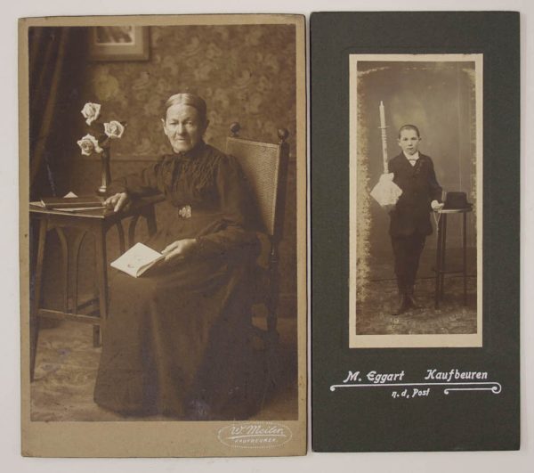 Unbekannt (19. Jahrhundert), Zwei Porträtphotographien von W. Meiler u. M. Eggart, Kaufbeuren , um 1890, Kabinettfoto