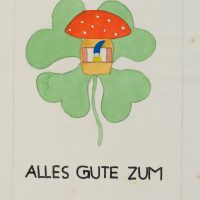 - Beschreibung: Mit Glückssymbolen: Kleeblatt, Schwein, Fliegenpilz.