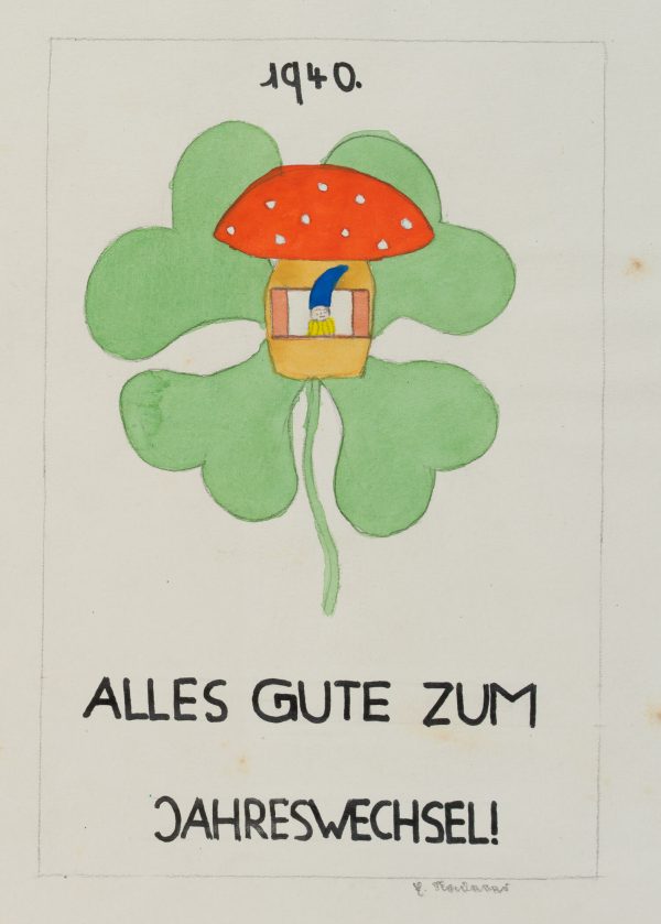 - Schlagworte: Glück, Jahr 1940, Jahreskarte, Neujahrskarte, Glückwunschkarte, Mode, Deutschland, Naiv, 1925-1949
