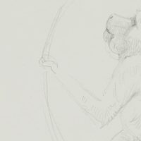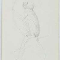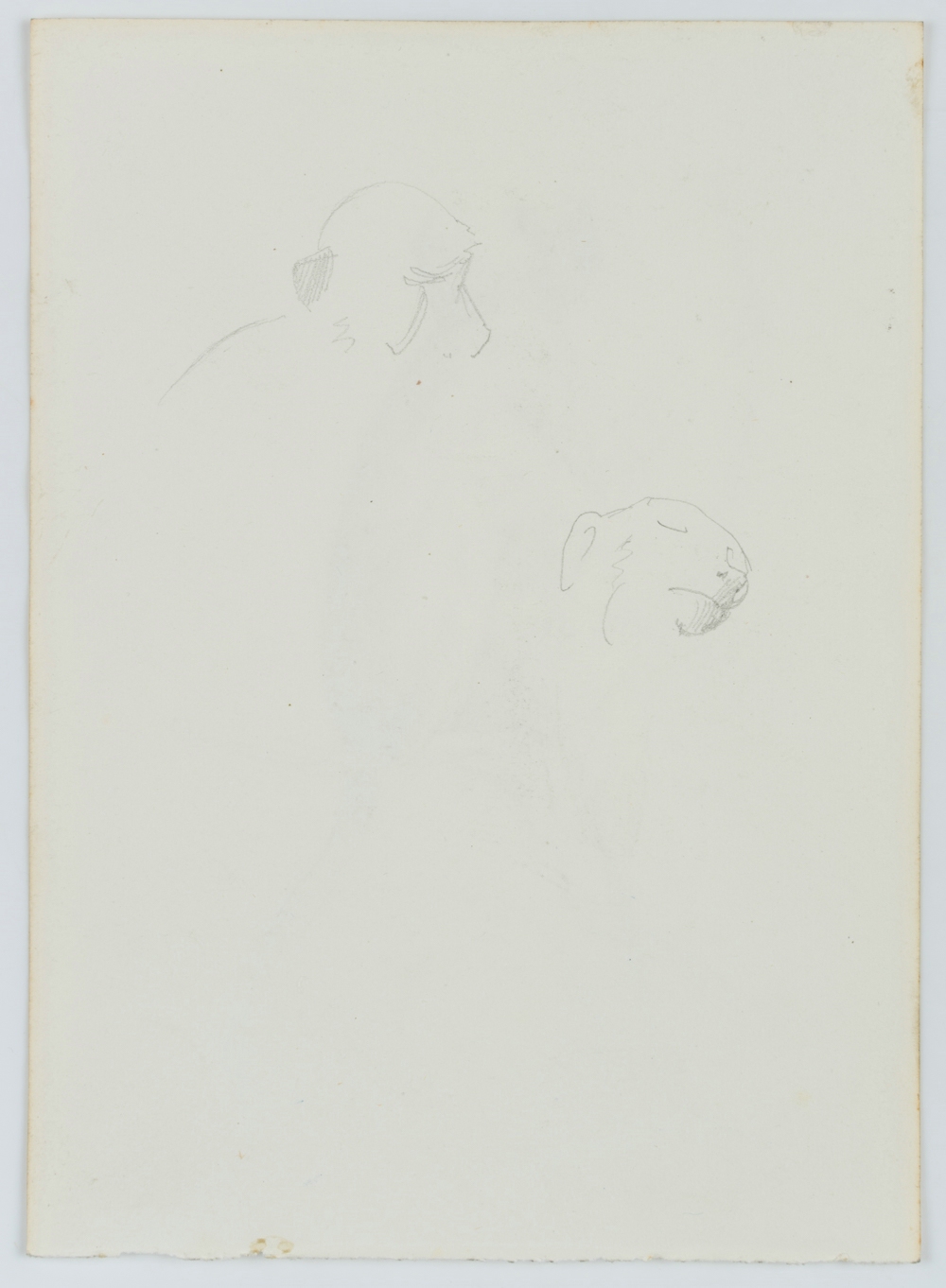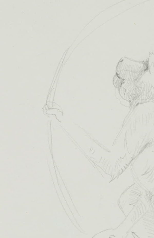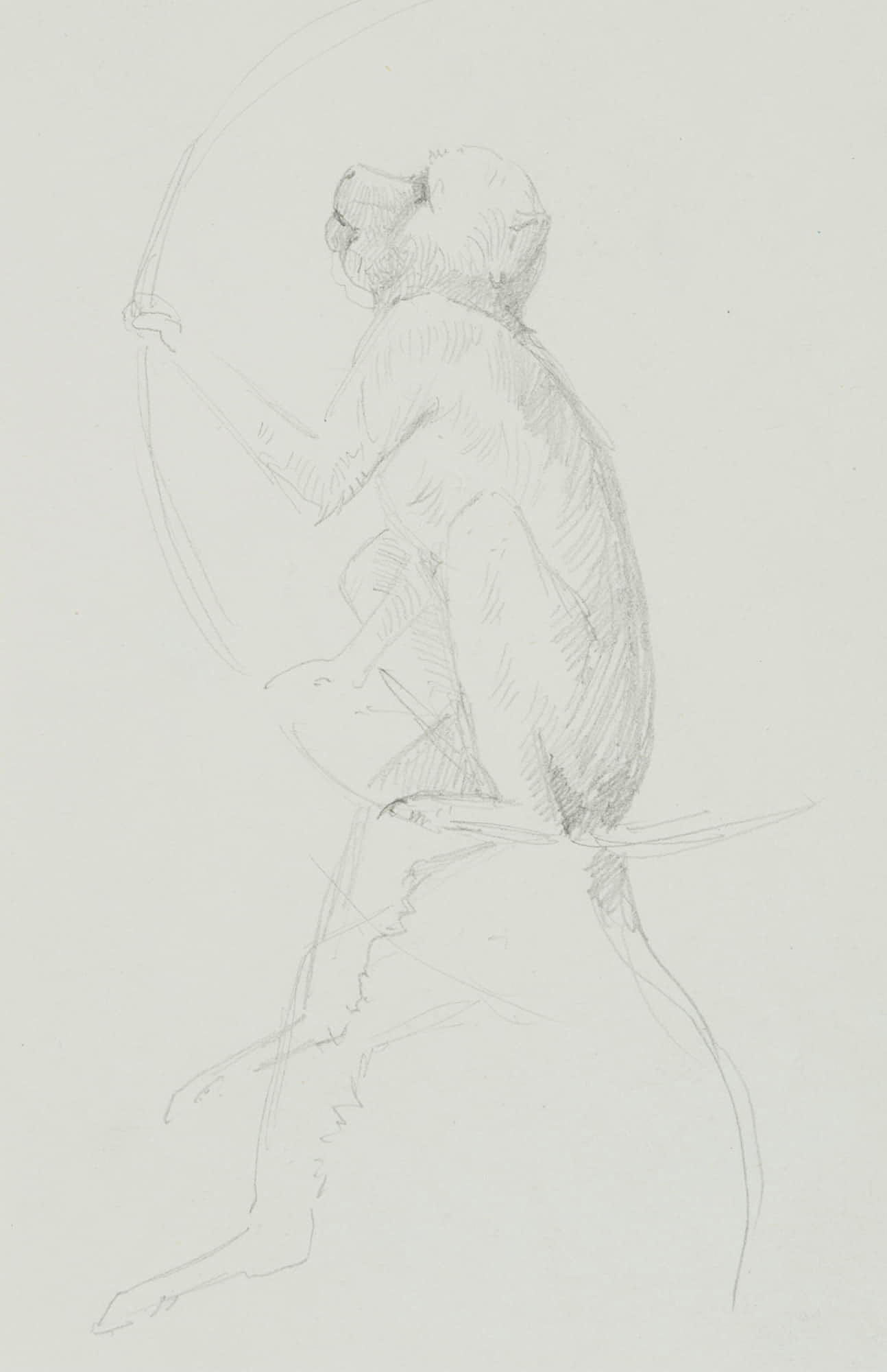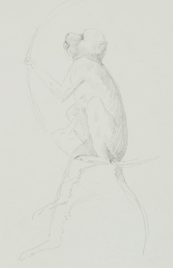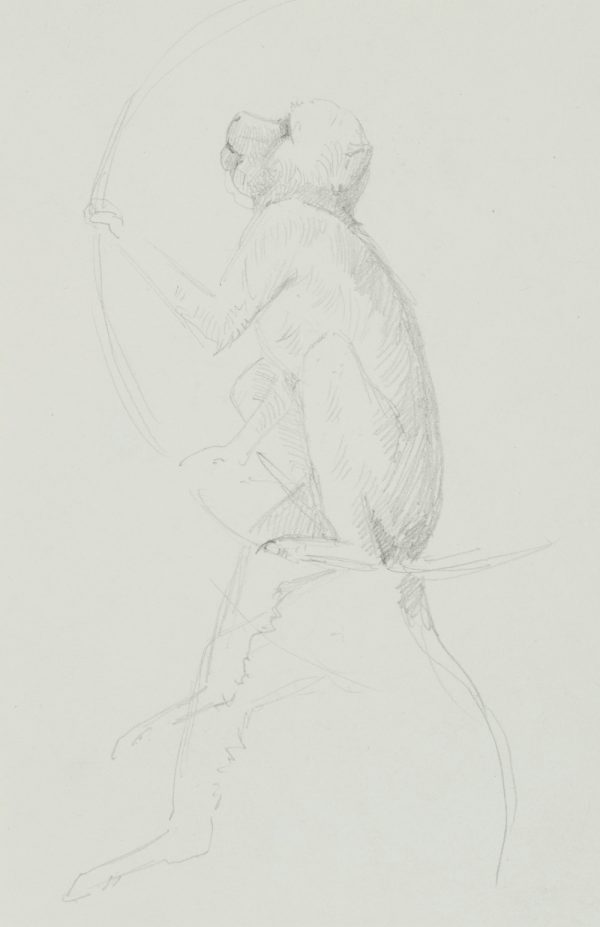 - Description: Beautiful animal drawing from the sketchbook of an anonymous Scandinavian artist. Showing a small monkey, perhaps a baboon in an animal park, sitting in a climbing ring. On the verso are single studies of a monkey.
