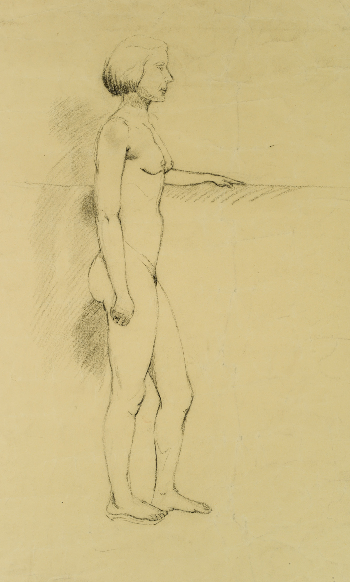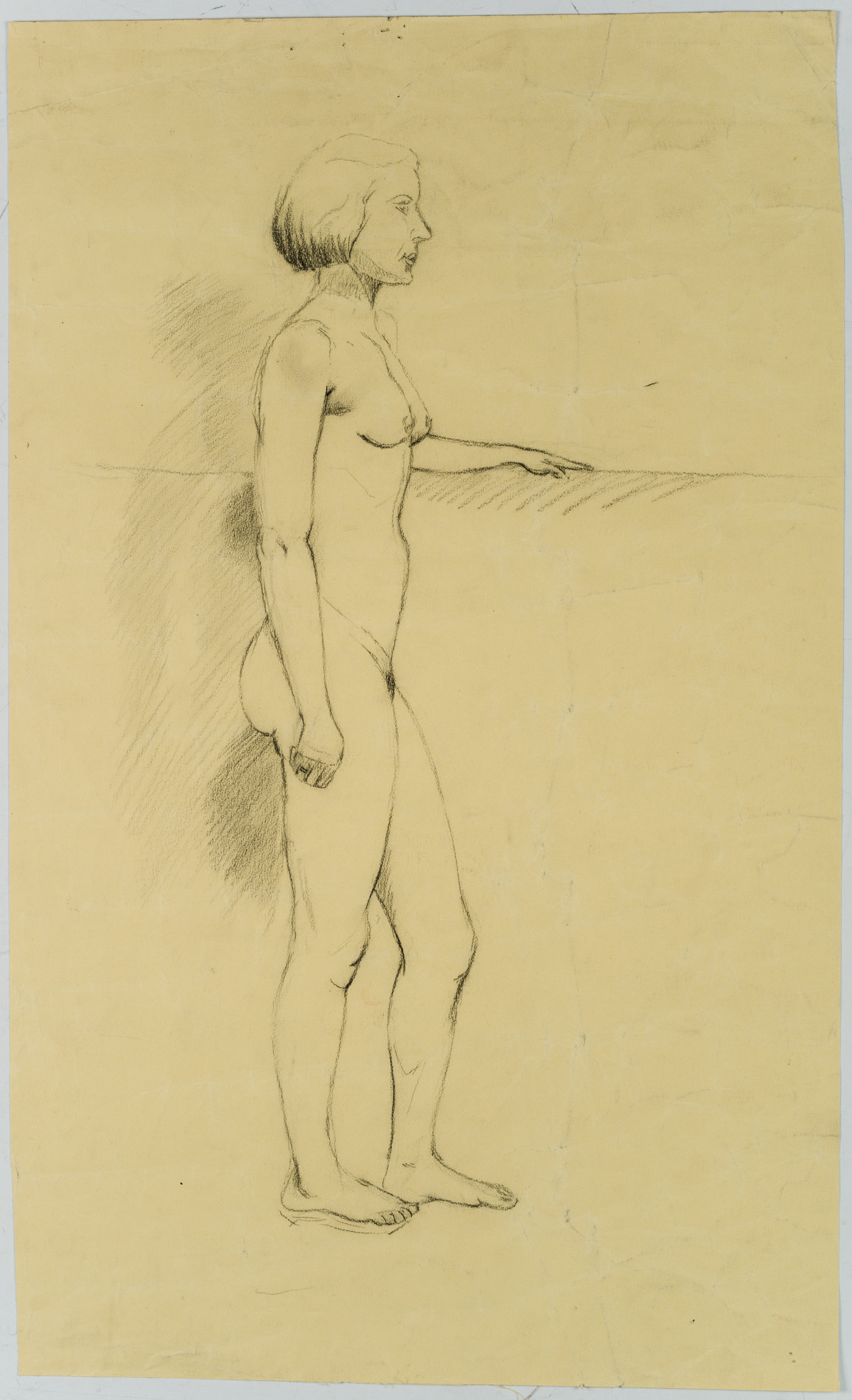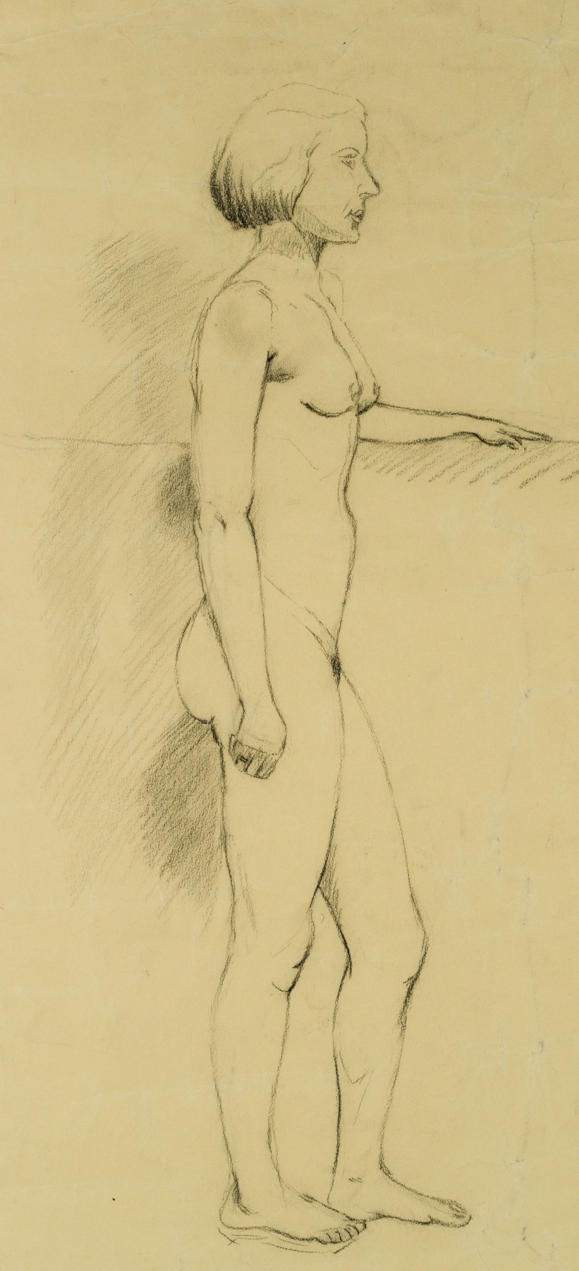 Unknown (20th century), Nude Study of a Standing Woman with Short Hair, , Charcoal