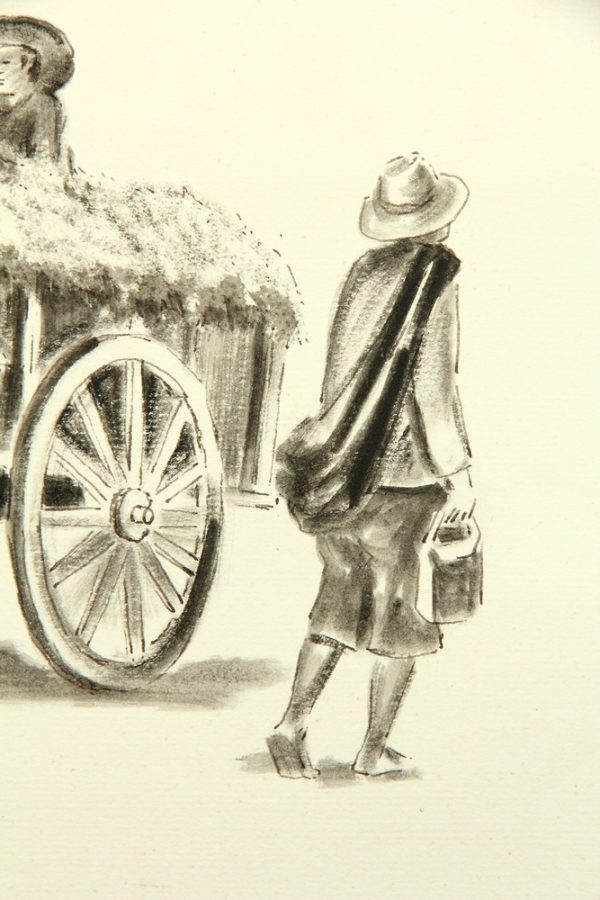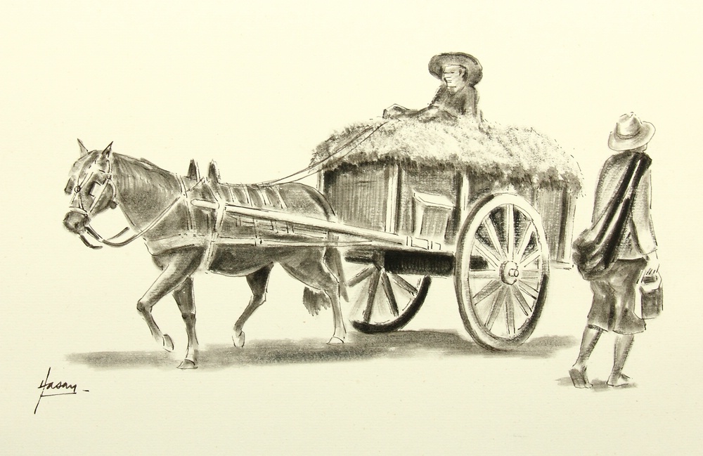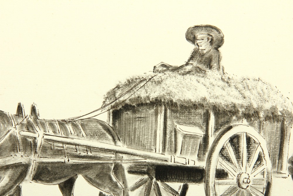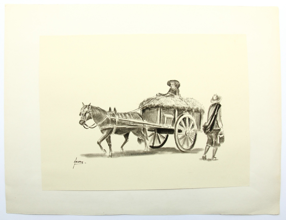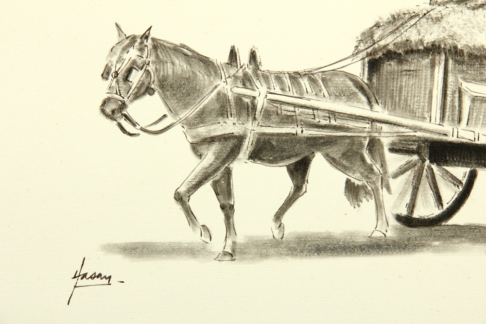 Unknown (20th century), Asian horse-drawn vehicle with hay load, , Indian ink