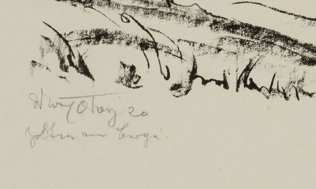 - Inscription: Signed and inscribed illegibly in pencil below the print on the left.