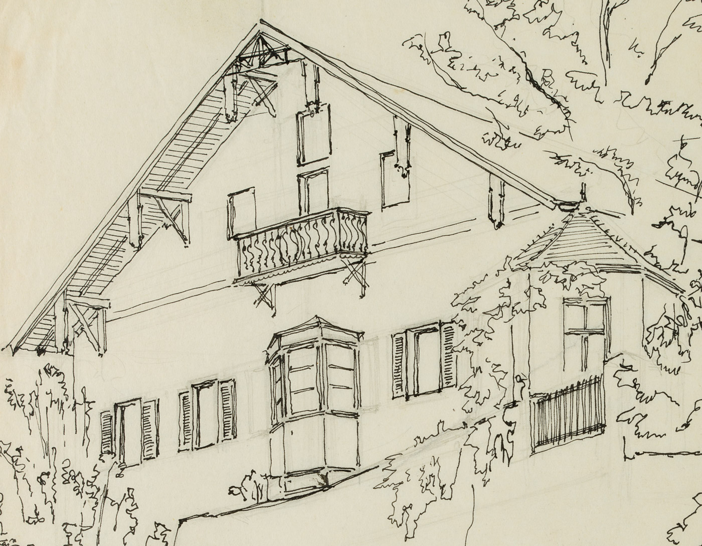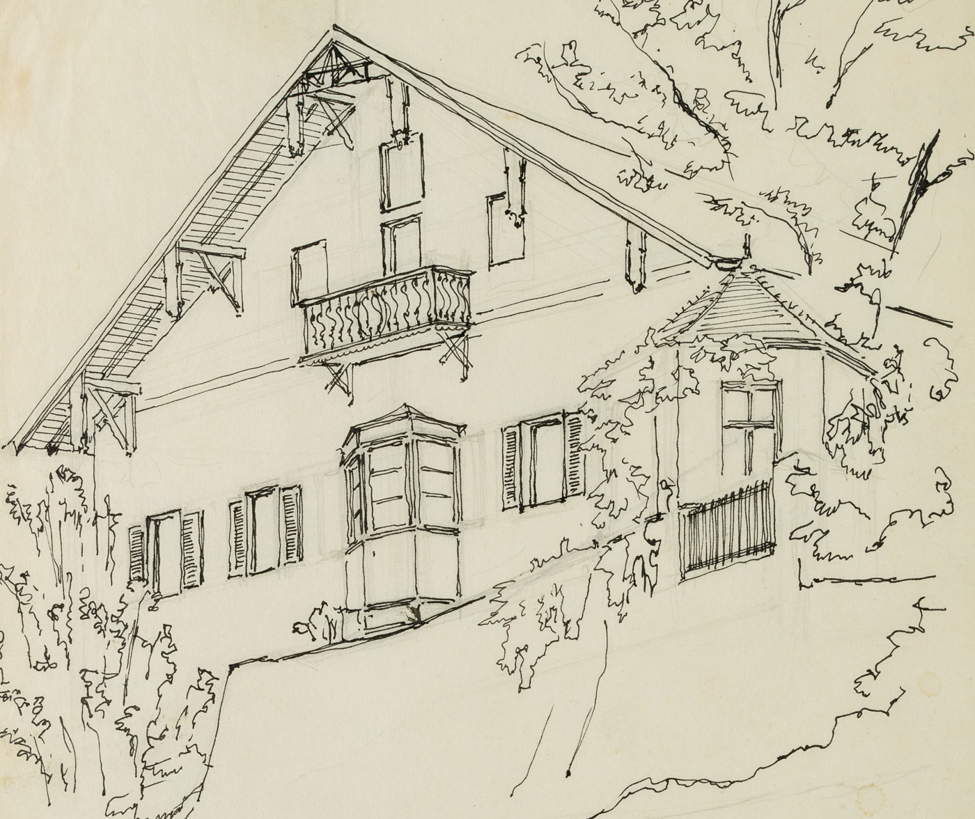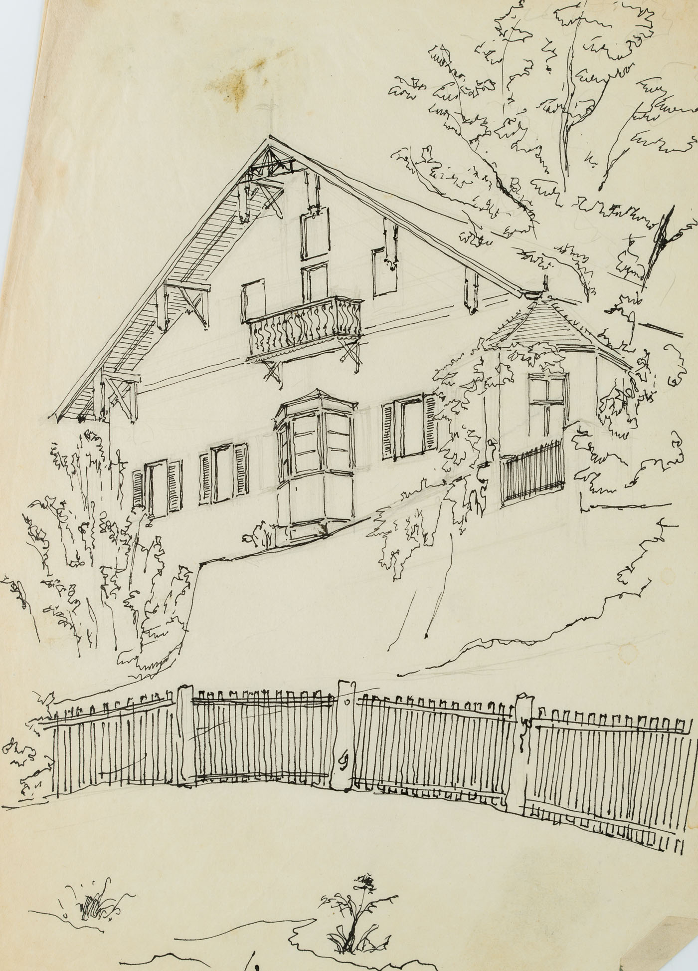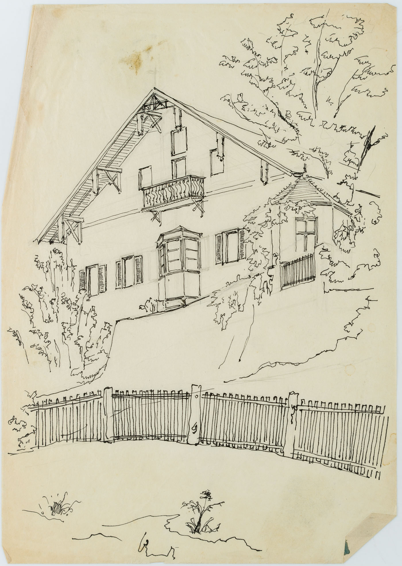 Unknown (20th century), Farmhouse with garden fence in Tyrol, , Pen drawing