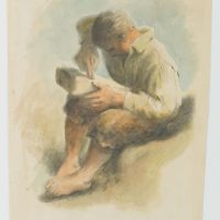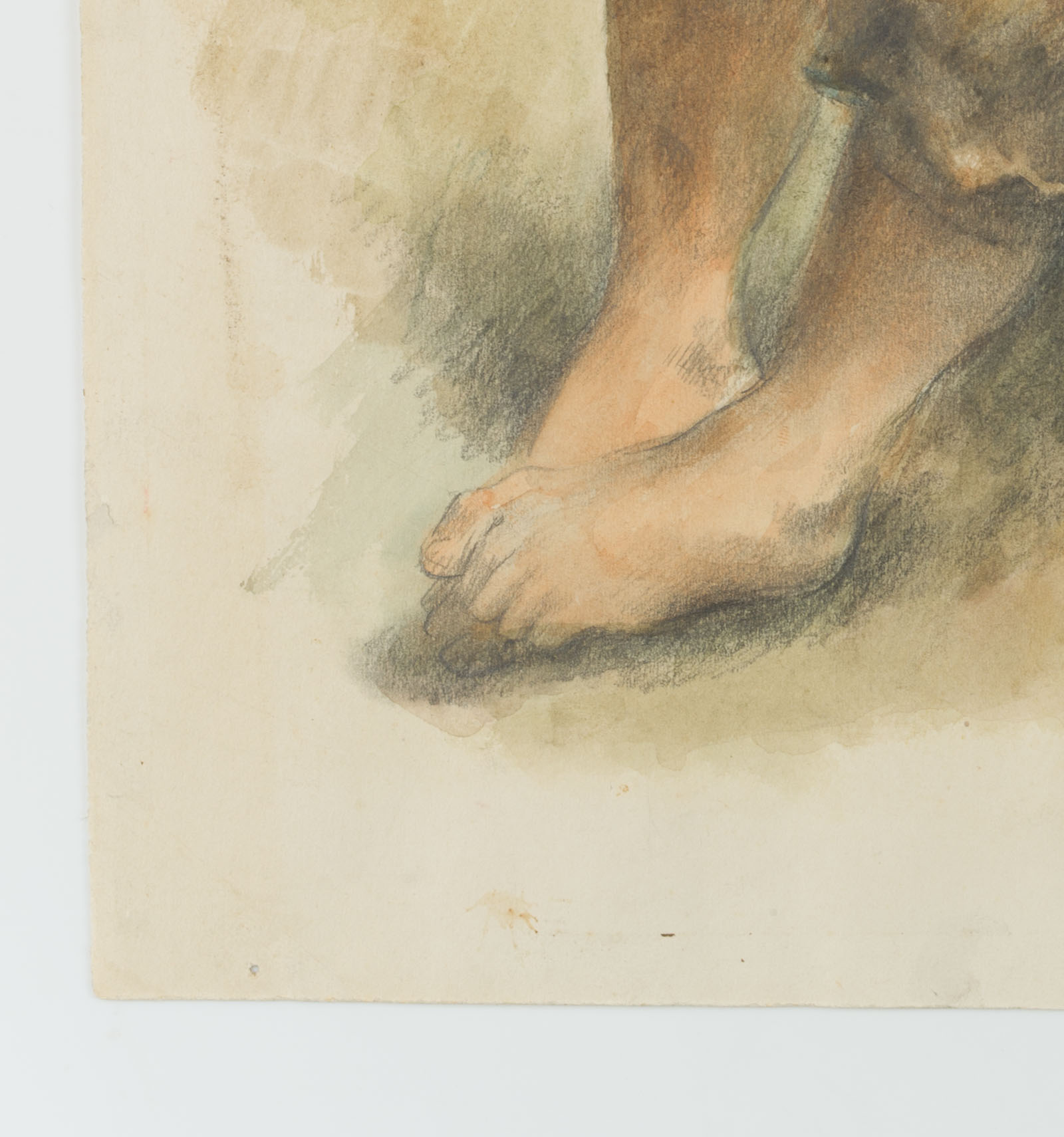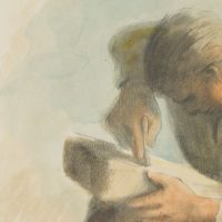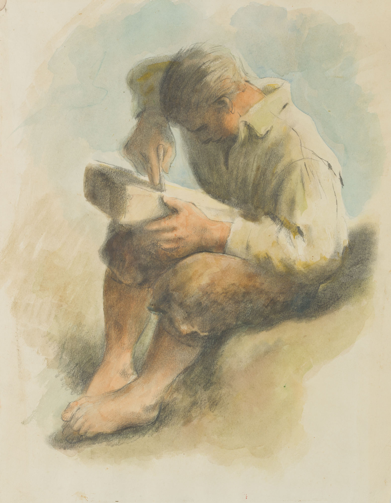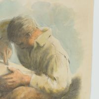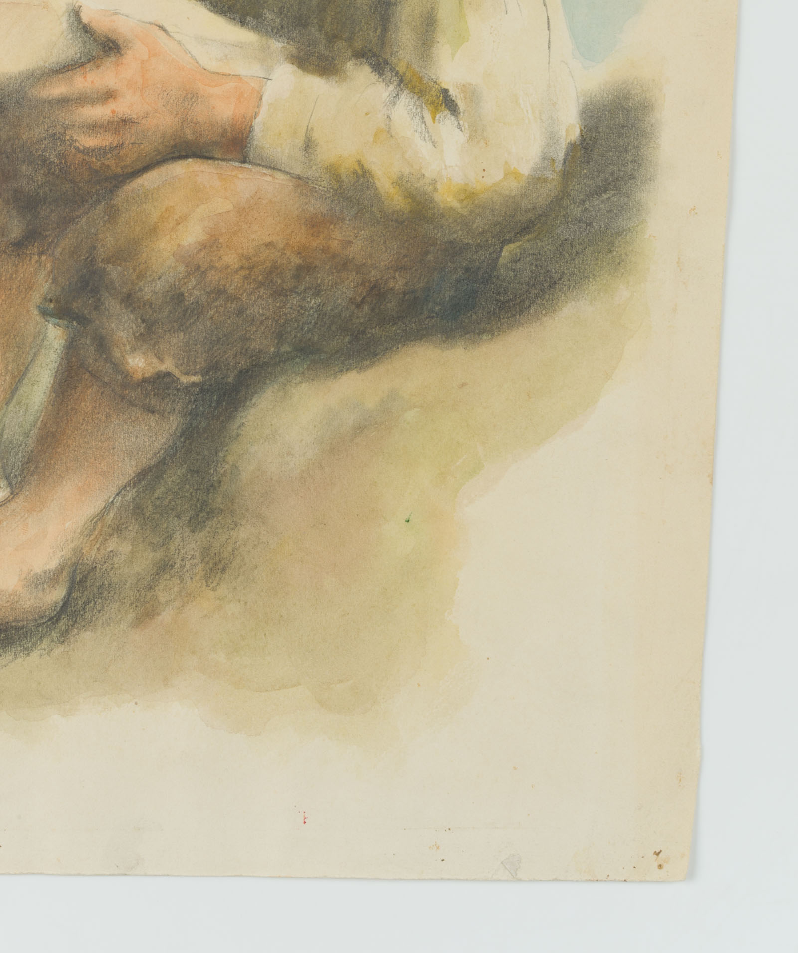 Unbekannt (20. Jahrhundert), Beim Holzschnitzen, , Aquarell