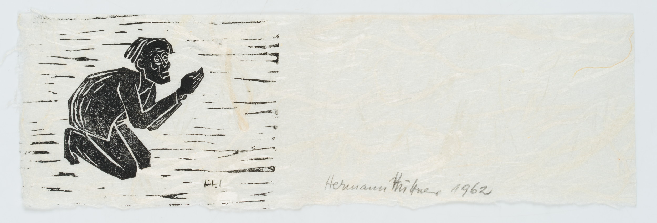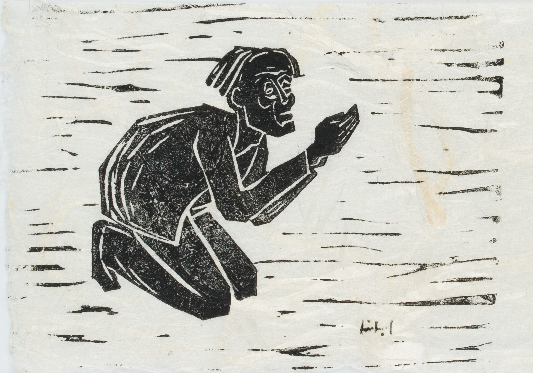 Unknown (20th century), Praying supplicant, 1962, Linocut