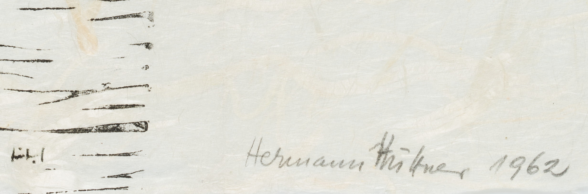 - Inscription: Lower right signed: “Hermann Hutterer[?]”, im Druck monogrammiert: “HH”.