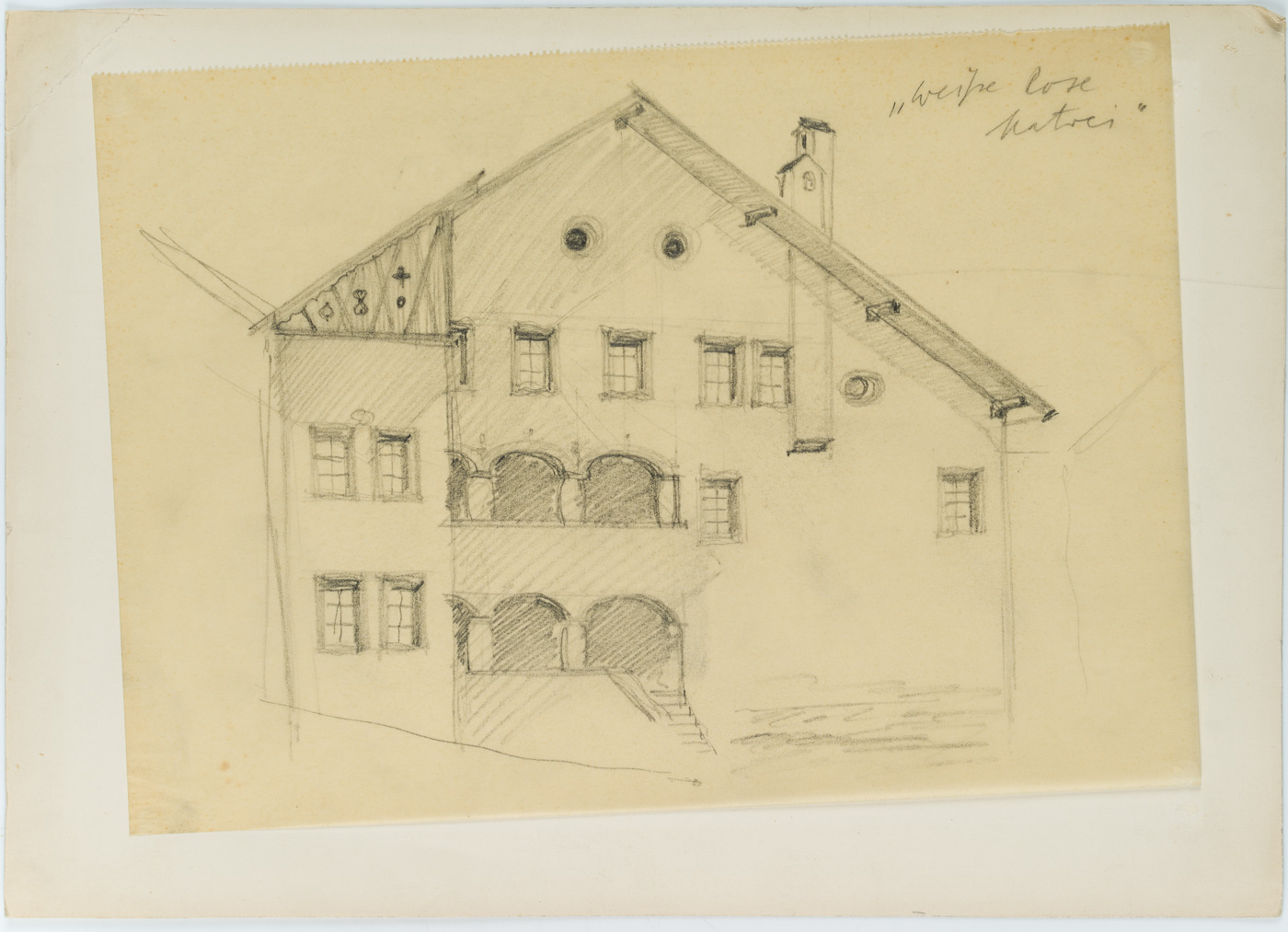 Unknown (20th century), View of the “Weiße Rose” inn in Matrei, Tyrol, , Pencil