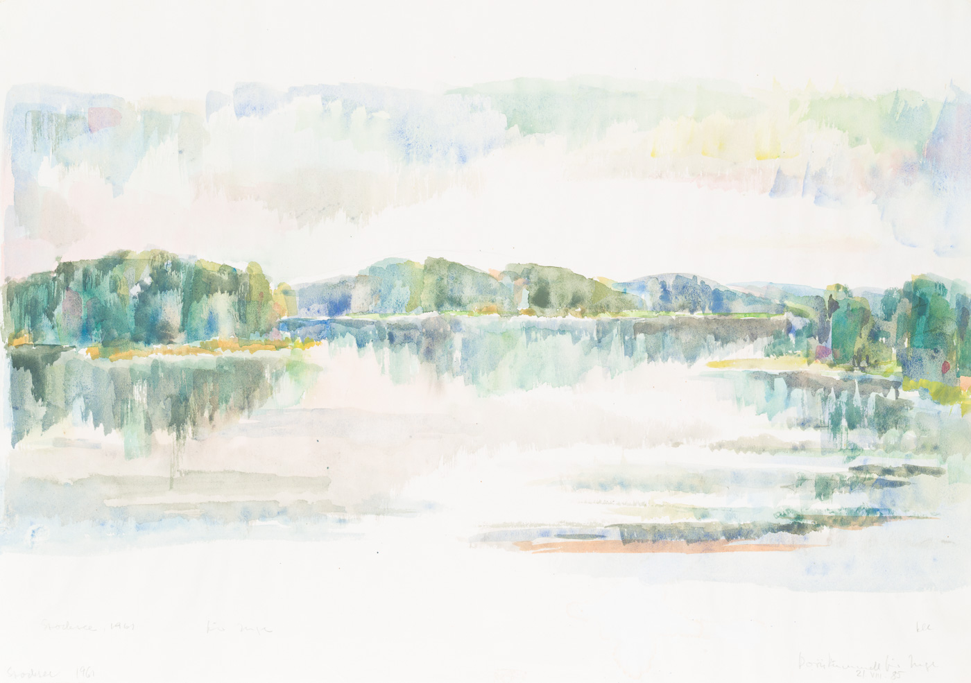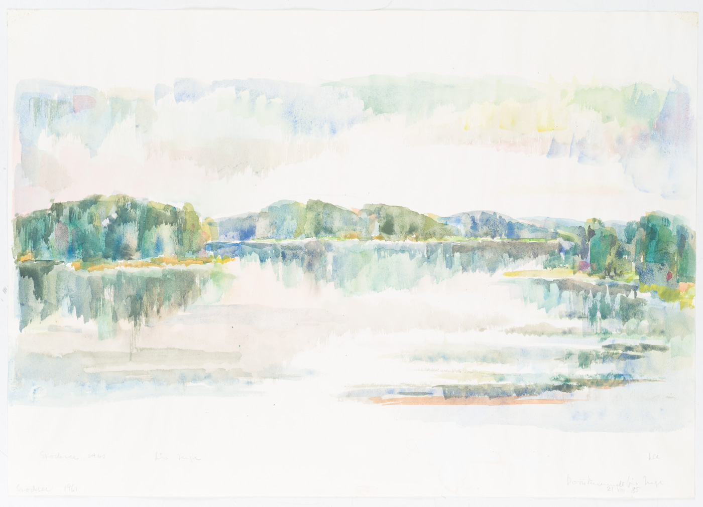 Unbekannt (20. Jahrhundert), Blick auf den Stocksee, Schleswig-Holstein, 1961, Aquarell