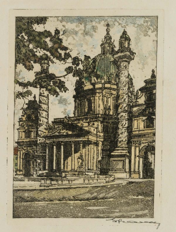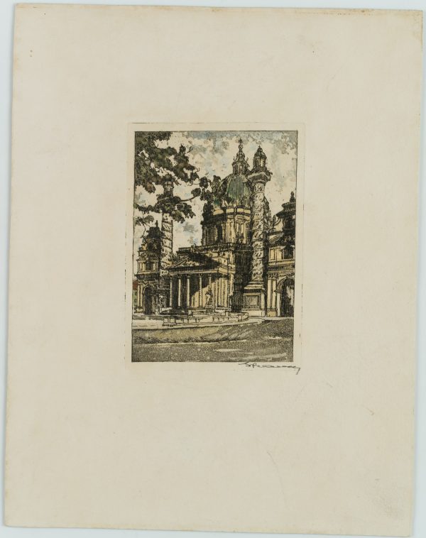 Unknown (20th century), View of the Karlskirche, Vienna, c. 1900, Aquatint