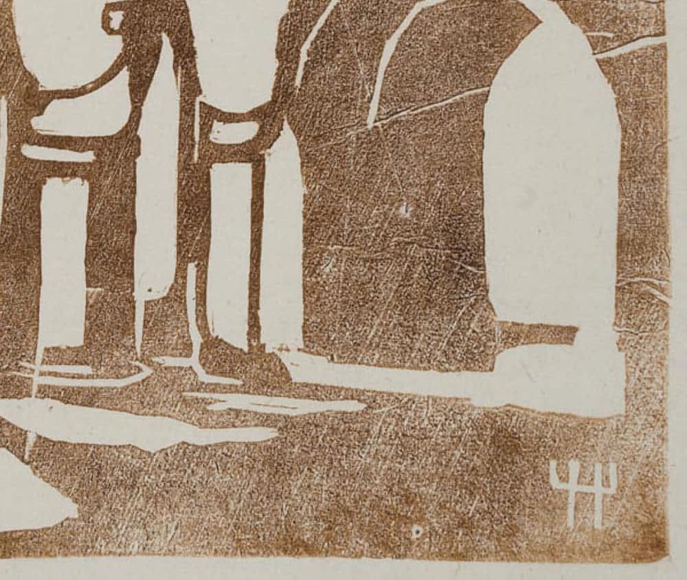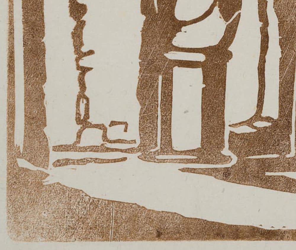 Unknown (20th century), View into a crypt, c. 1910, Linocut