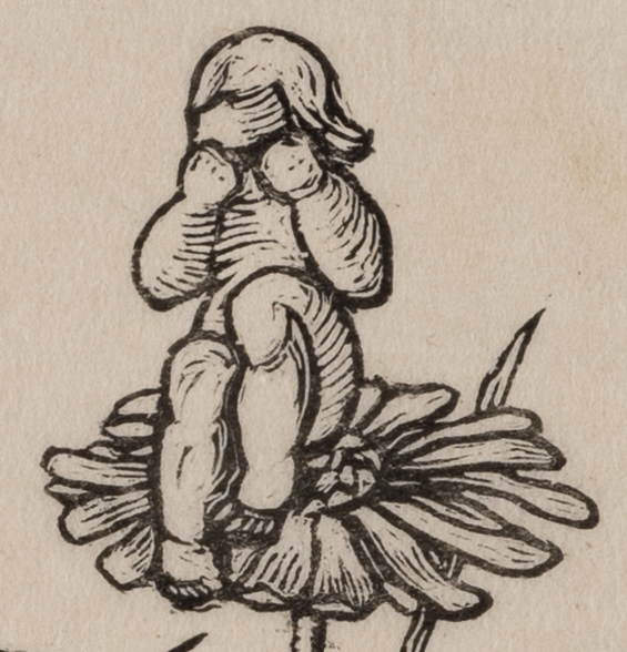 Unbekannt (20. Jahrhundert), Blumenkind. Mädchen auf einer Blüte sitzend, um 1900, Holzschnitt