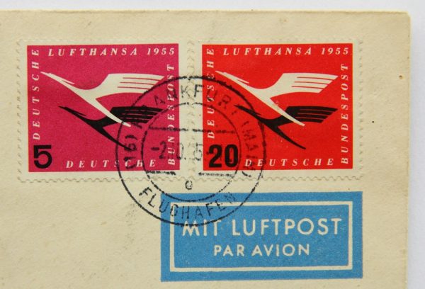 Unknown (20th century), Envelope, special stamps Deutsche Lufthansa, 1955, Lithography