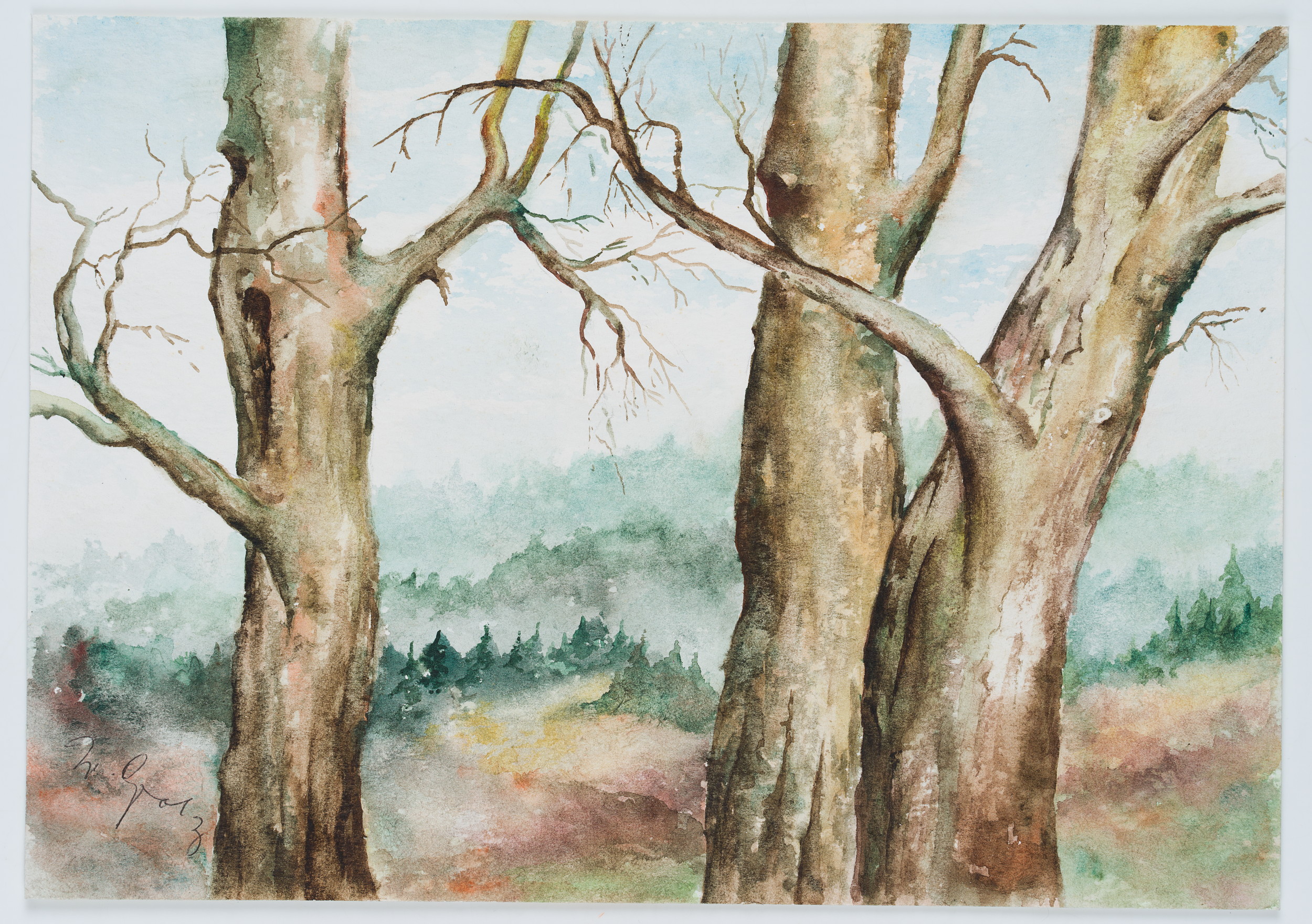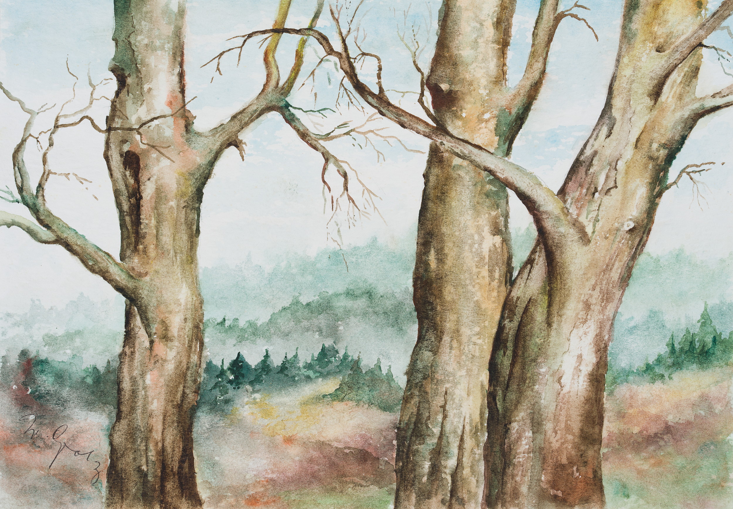 Unbekannt (20. Jahrhundert), Buchen im Winter, , Aquarell