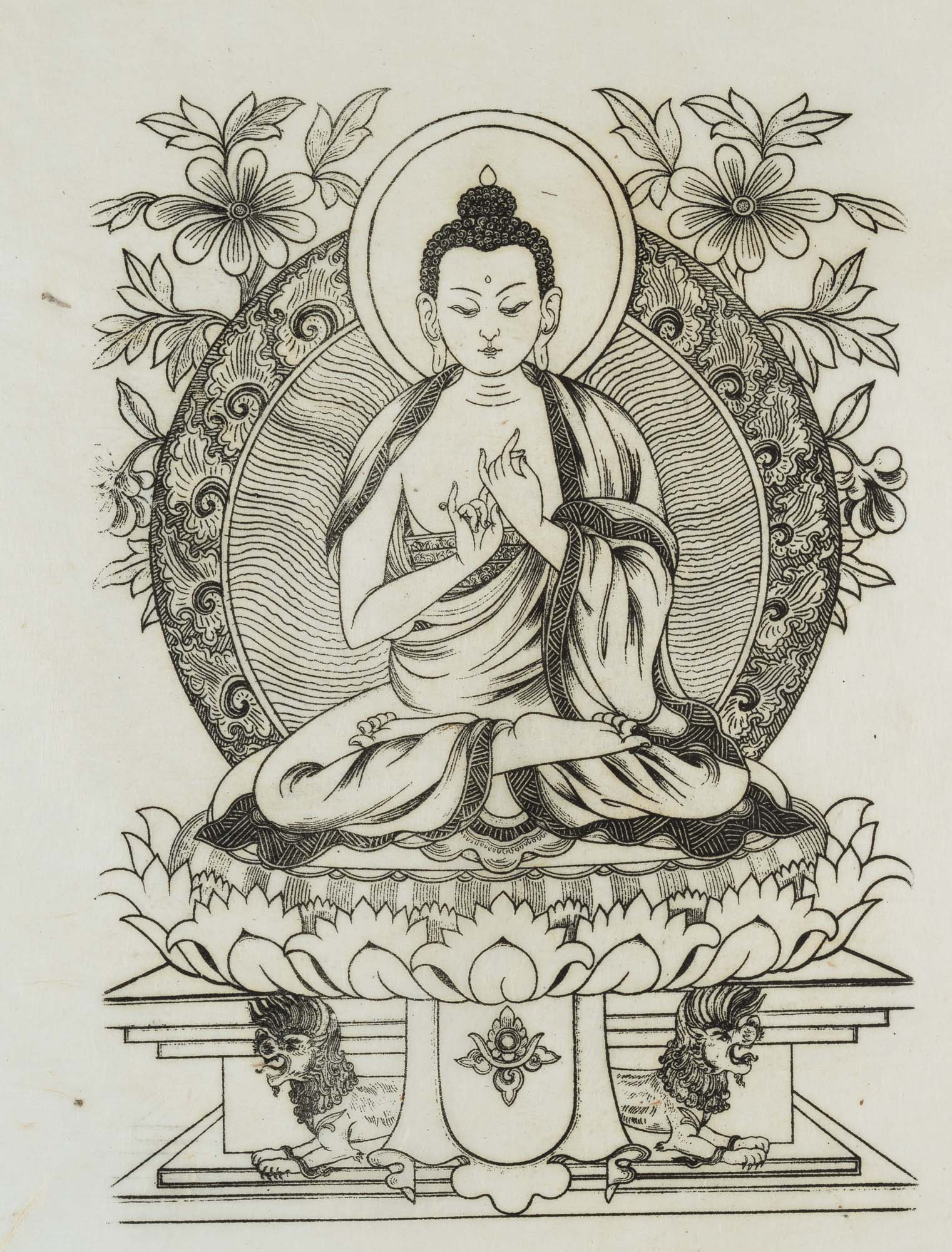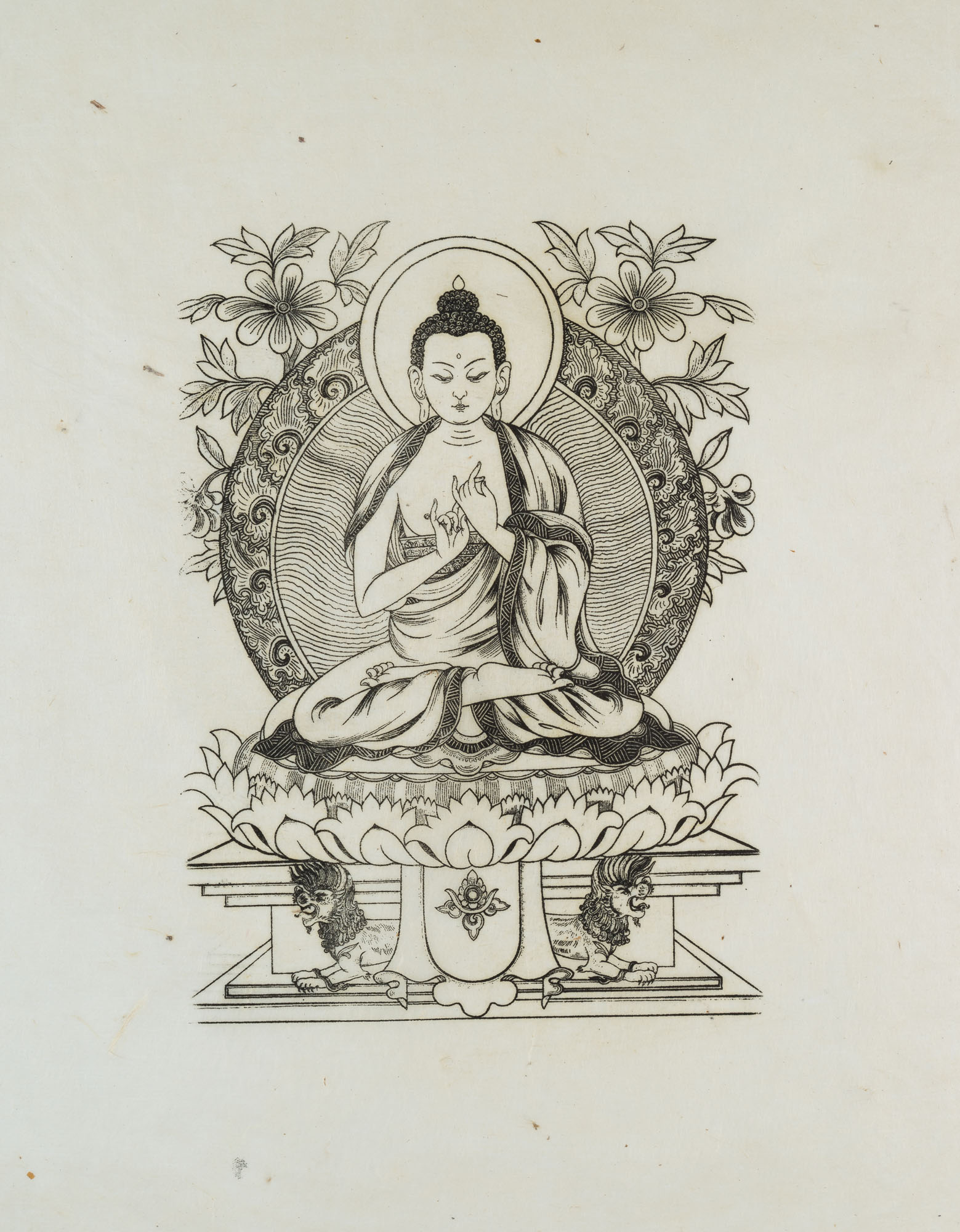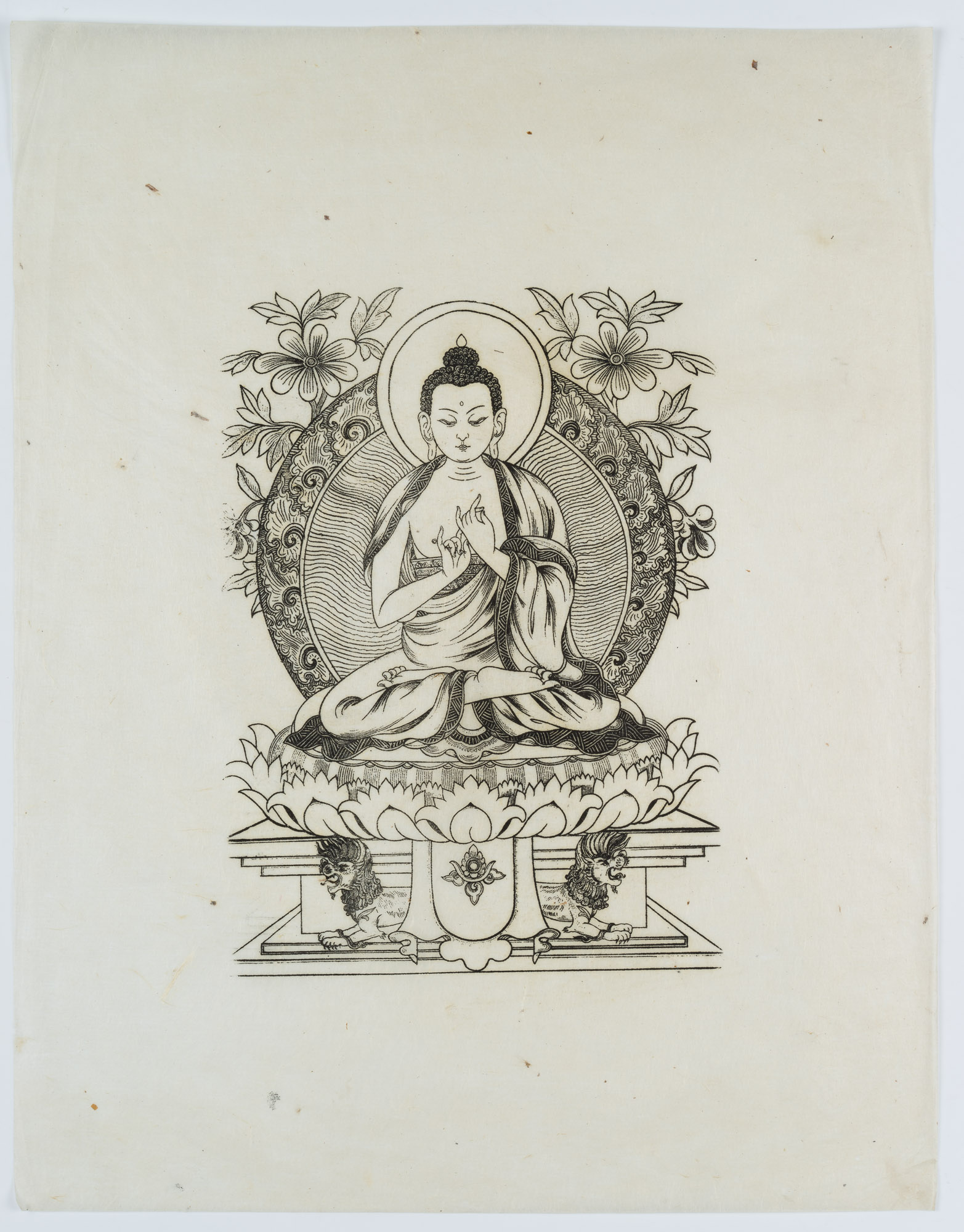 Unknown (20th century), Buddhism, Dharmachakra Mudra, Preacher Gesture, Nepal, Deities, Buddha, Lotus Seat, , Woodcut