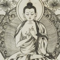 Unbekannt (20. Jahrhundert), Buddhismus, Dharmachakra Mudra, Prediger Geste, Nepal, Götter, Buddha, Lotussitz, , Holzschnitt
