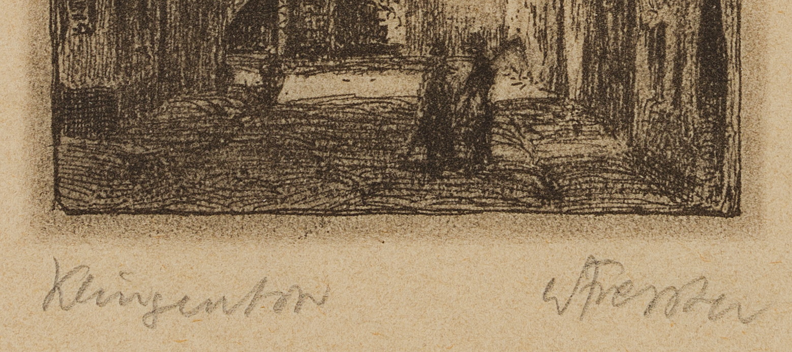 - Bezeichnung: Unten rechts signiert: „[unkenntlich]“. Unten links eigenhändig bezeichnet: „Klingentor“.