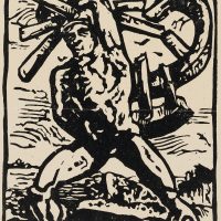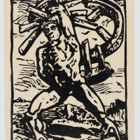 Unknown (20th century), The Broken Wheel of Fortuna, 1988, Linocut