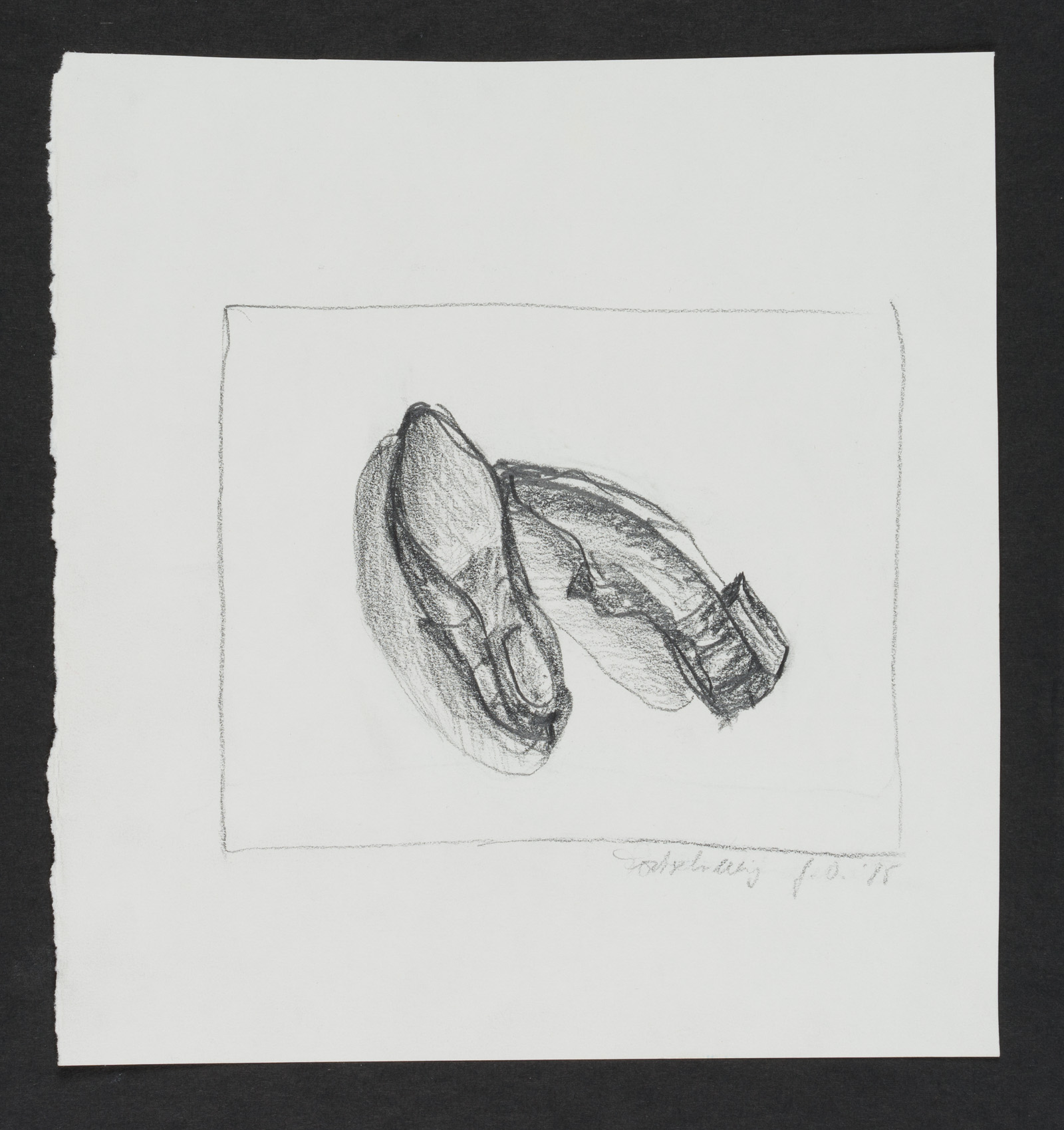 Unknown (20th century), The beak shoes, two representations, view from above and the sole side, 1986, Charcoal