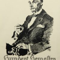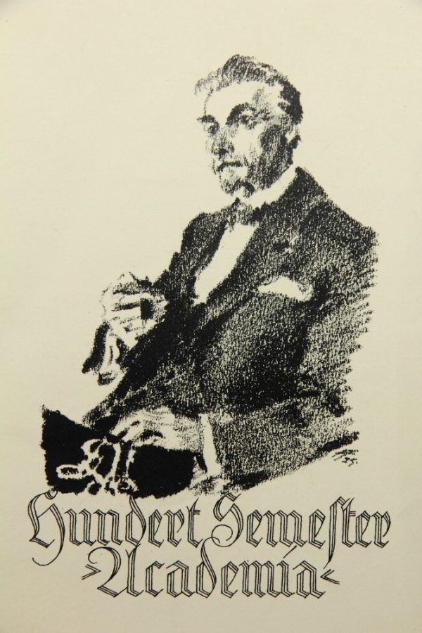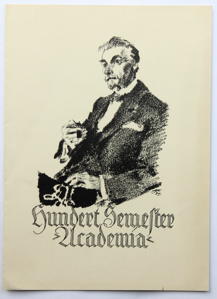 Unbekannt (20. Jahrhundert), Einladungskarte „Hundert Semester Academia“ in Künstlerhaus Leipzig, 1925, Lithographie