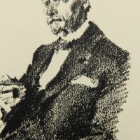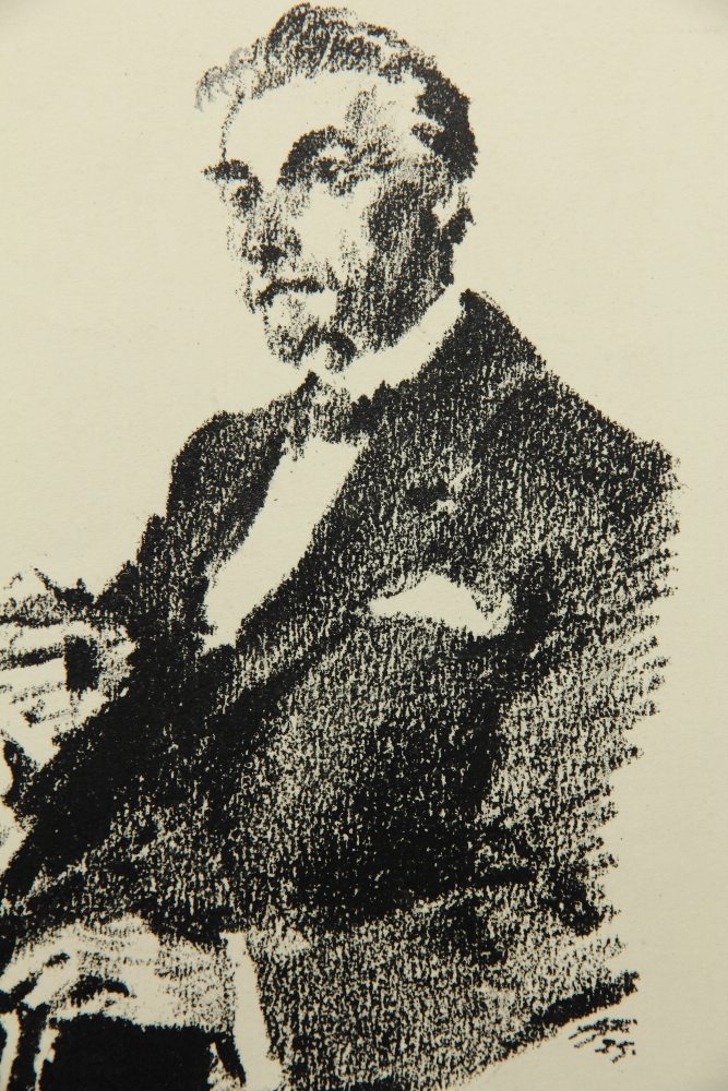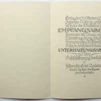 - Beschreibung: Faltblatt im Inneren mit gedrucktem Einladungstext versehen. Innerhalb der Darstellung in Stein signiert und auf [19]25 datiert.