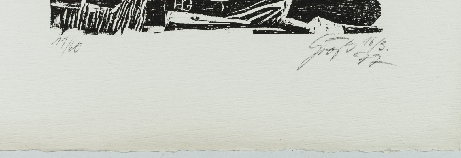 - Bezeichnung: Links unterhalb der Graphik nummeriert mit “11/60” und rechts signiert und datiert mit: “Groß 16/5 77”.