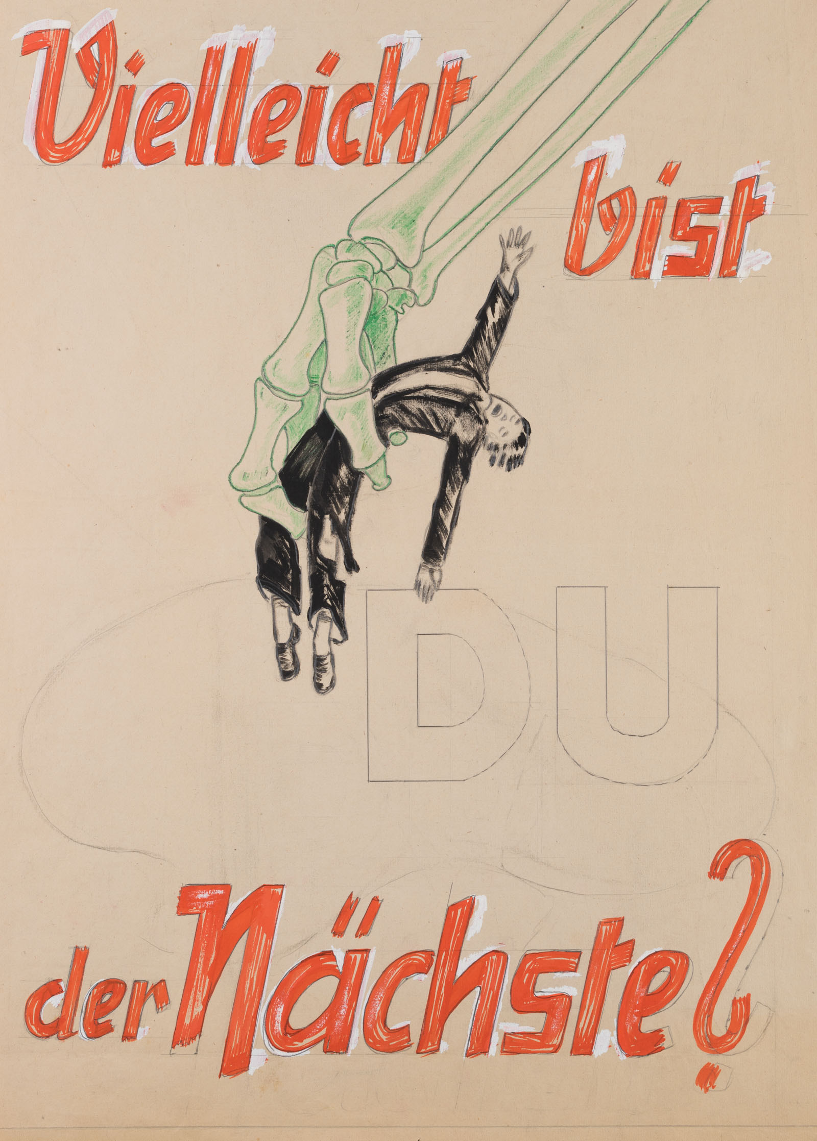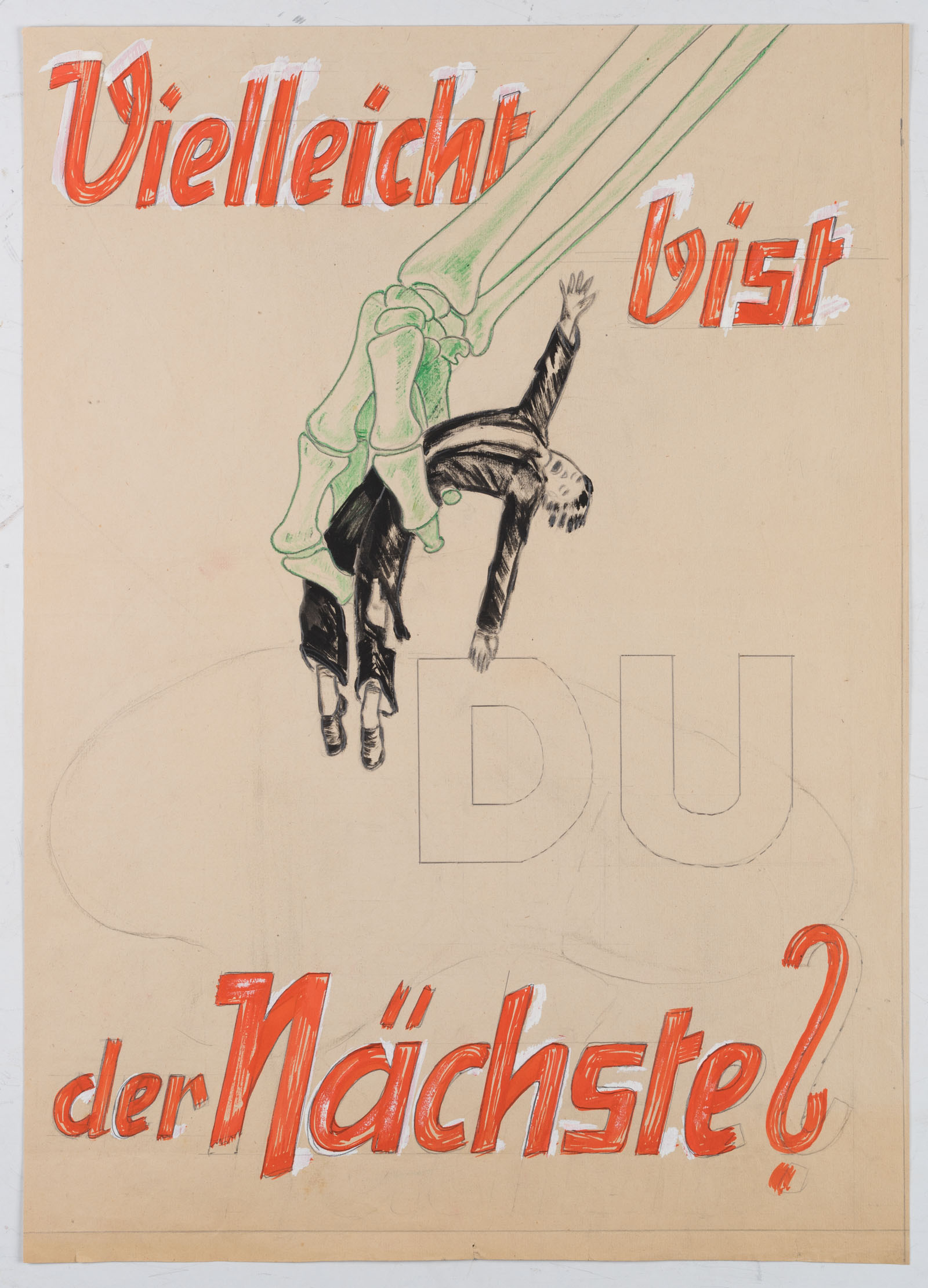 Unbekannt (20. Jahrhundert), Handgemaltes Filmplakat, möglicherweise Abspannplakat, “Vielleicht bist Du der Nächste?”, Kriminalfilm, um 1940, Bleistift