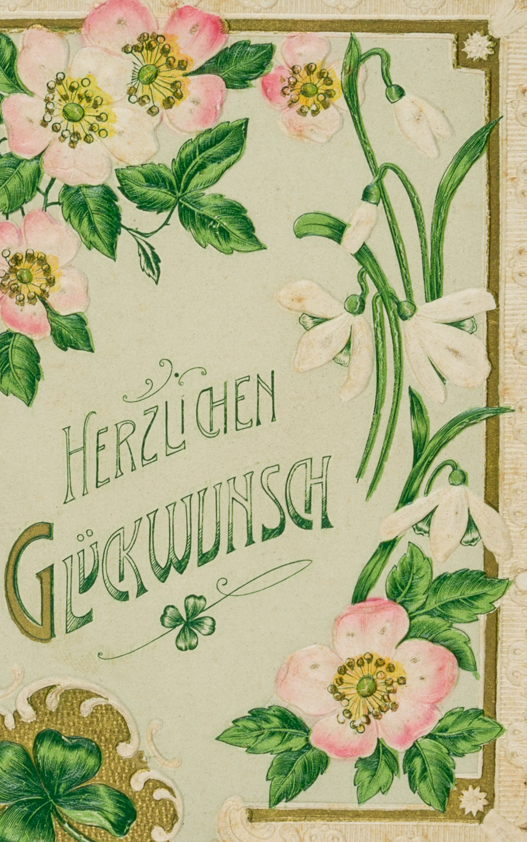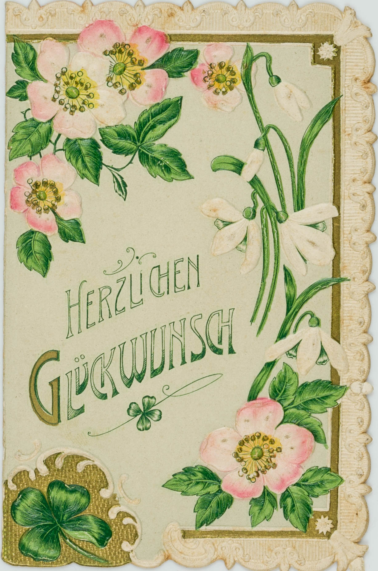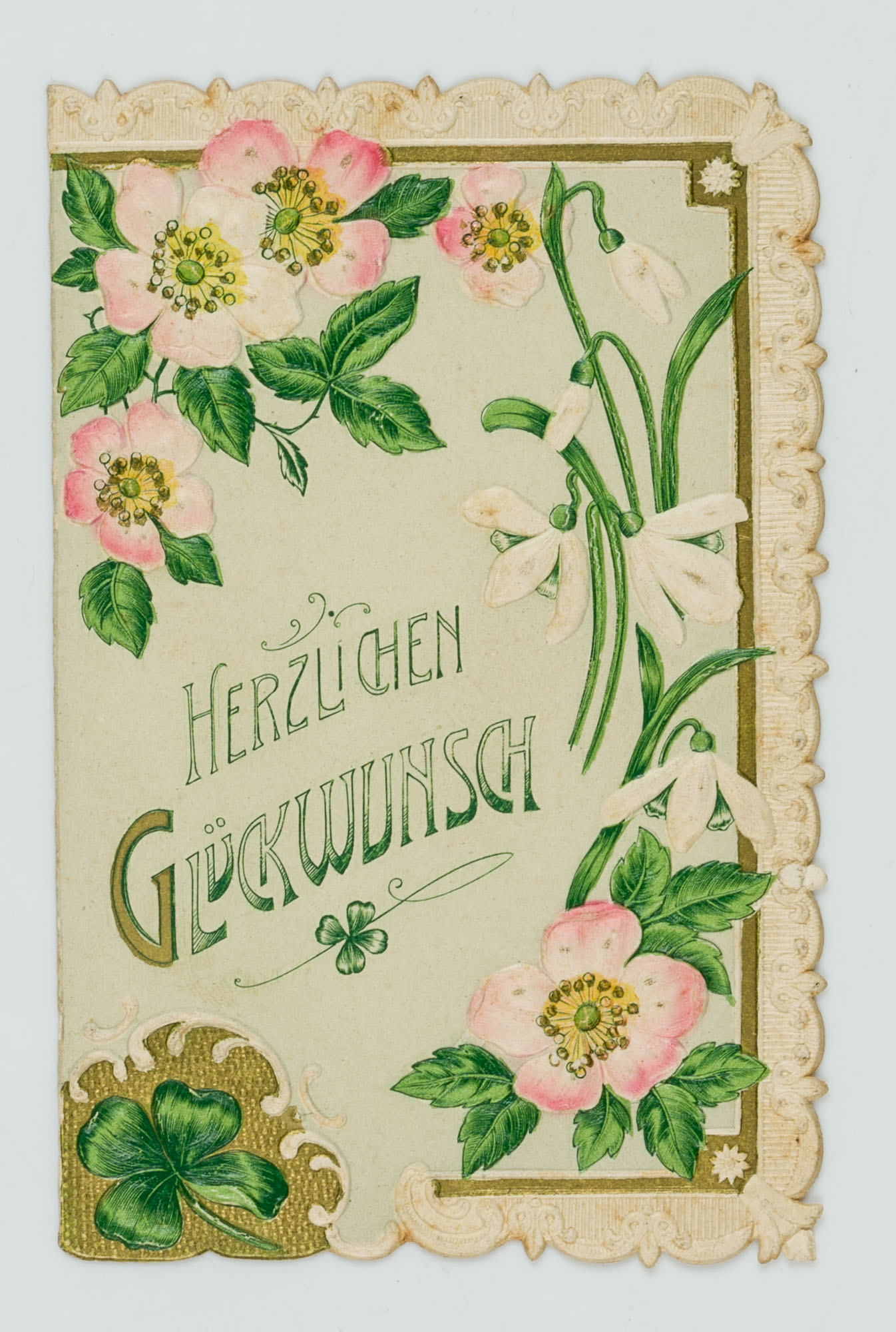 Unbekannt (20. Jahrhundert), Sehr schöne florale Glückwunschkarte. Prägedruck, um 1900, Glückwunschbillet