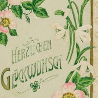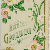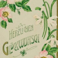 - Beschreibung: Prägedruck mit Schneeglöckchen und Klee.