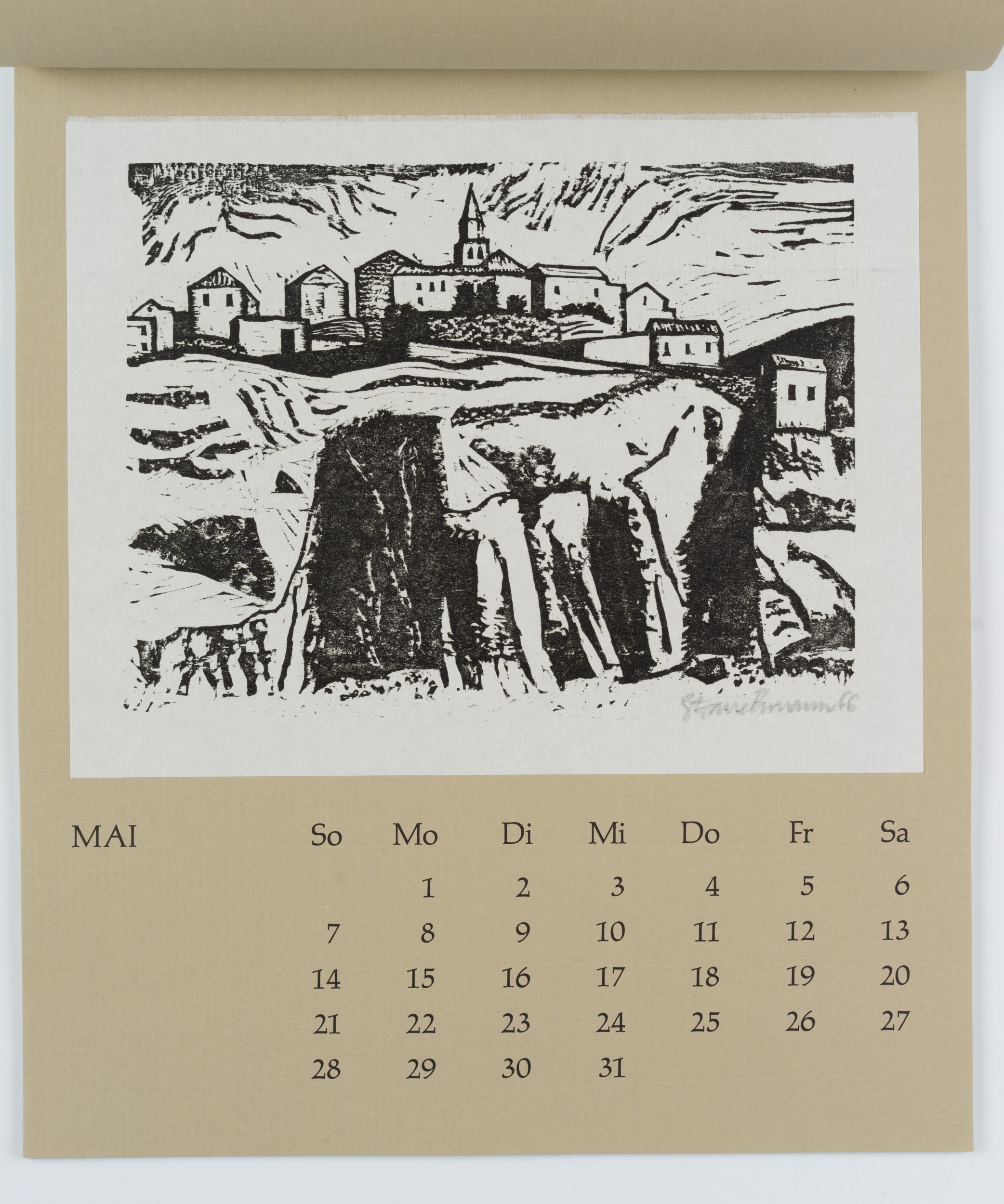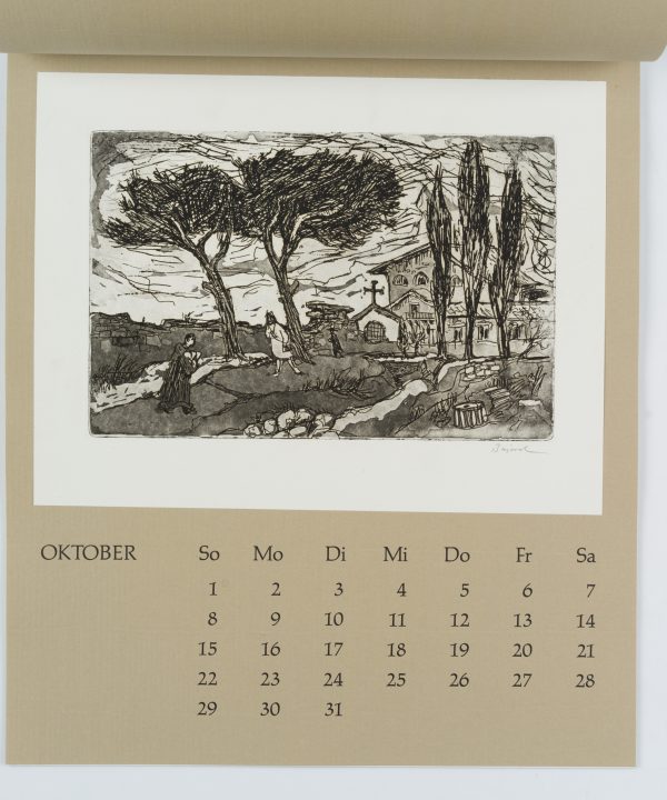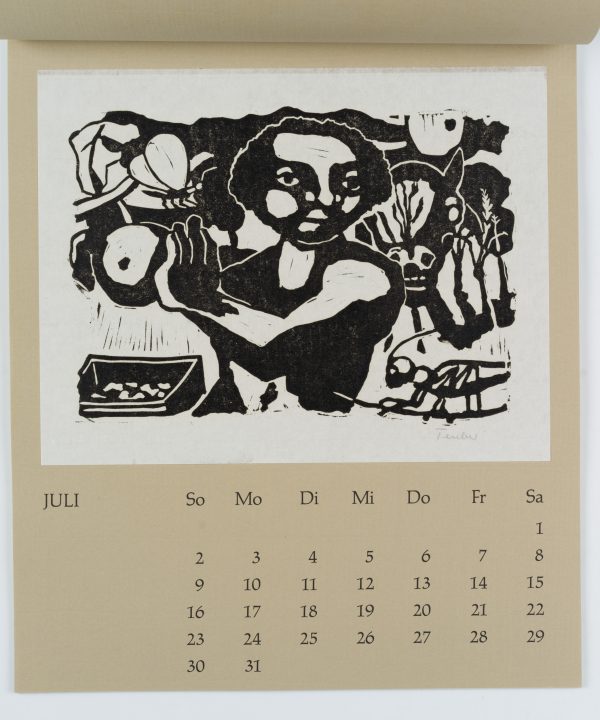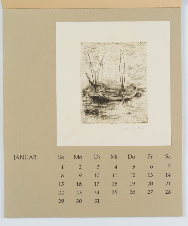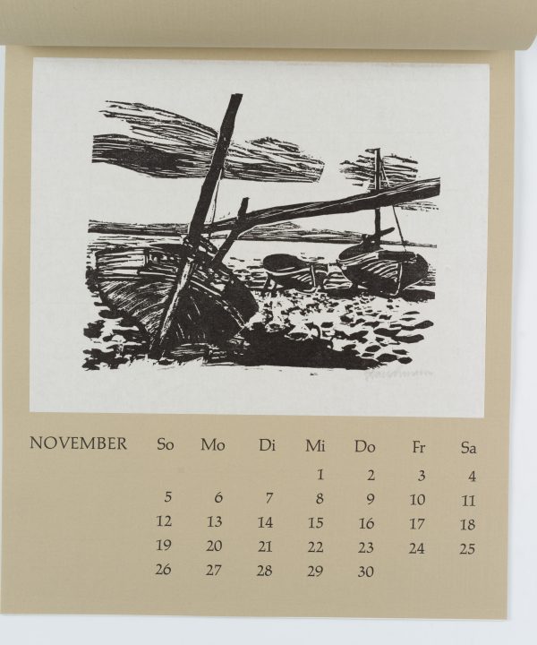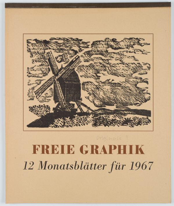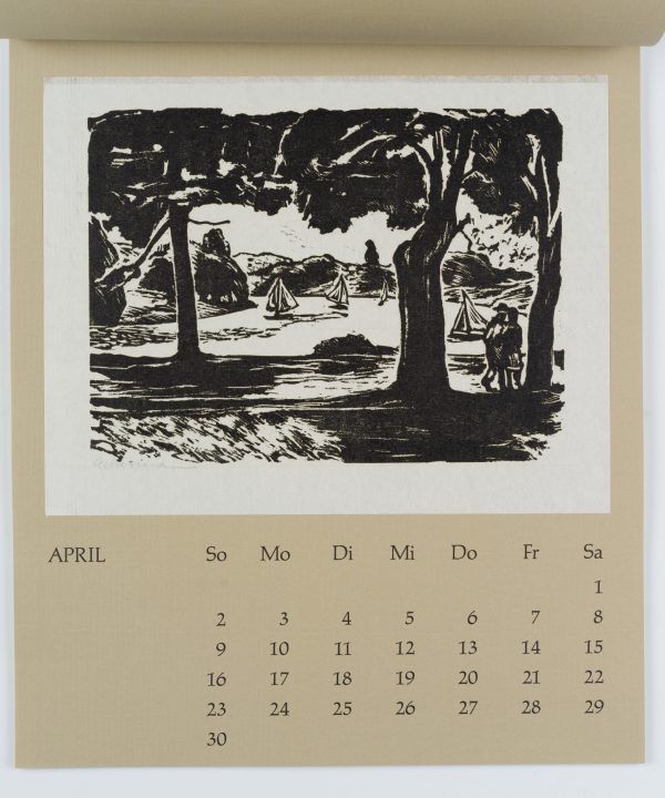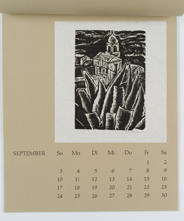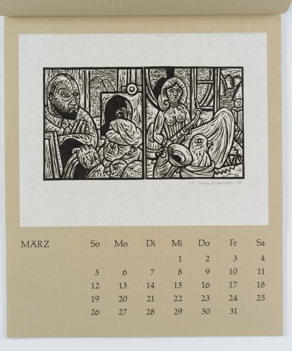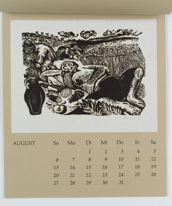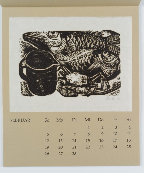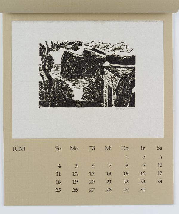 - Beschreibung: Zwölf Radierungen, Holzschnitte und Linolschnitte, jeweils monatsweise auf Kalenderblätter montiert.