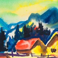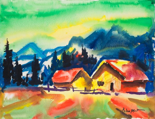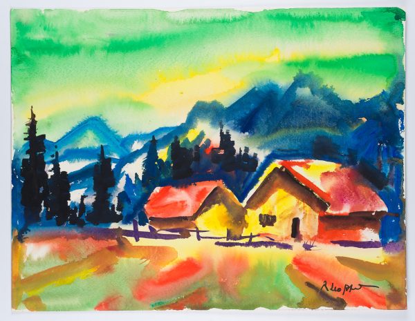 Unknown (20th century), Homestead on the Mountain, Impressionistic Landscape, , Watercolor