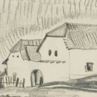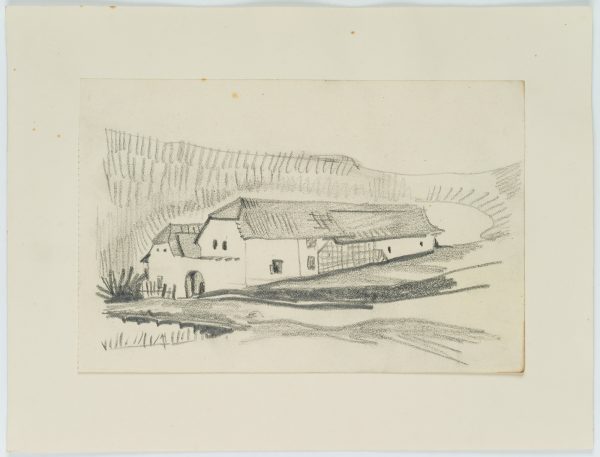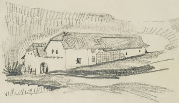 Unknown (20th century), Large homestead in the landscape, 1938, Pencil