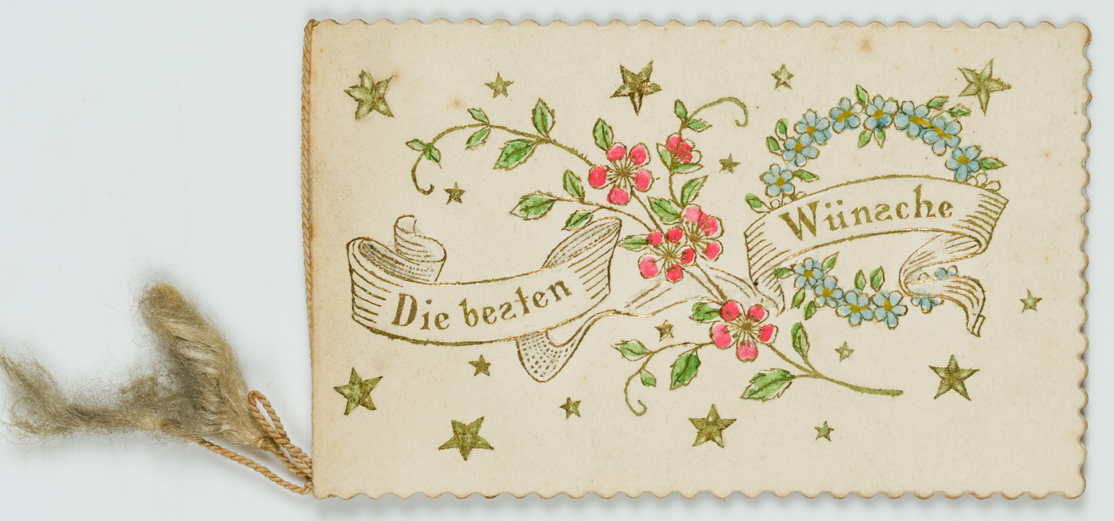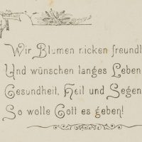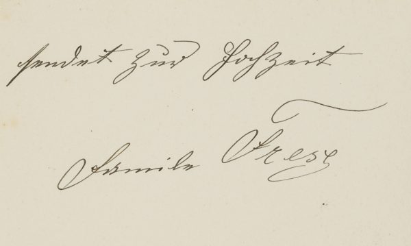 - Beschreibung: Schöne Präge-Glückwunschkarte zur Hochzeit; eingehängtes Doppelblatt mit gedruckten Glückwünschen sowie verso handschriftlich mit Tinte.