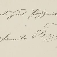 - Description: Beautiful embossed wedding greeting card; inserted double sheet with printed congratulations as well as handwritten in ink on verso.