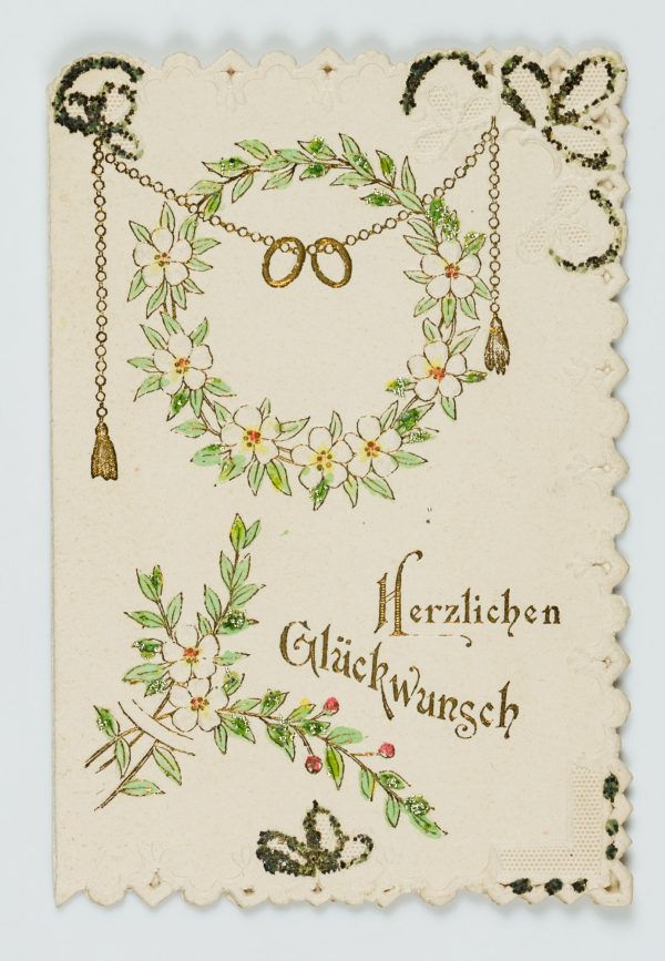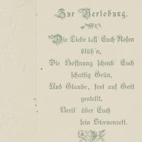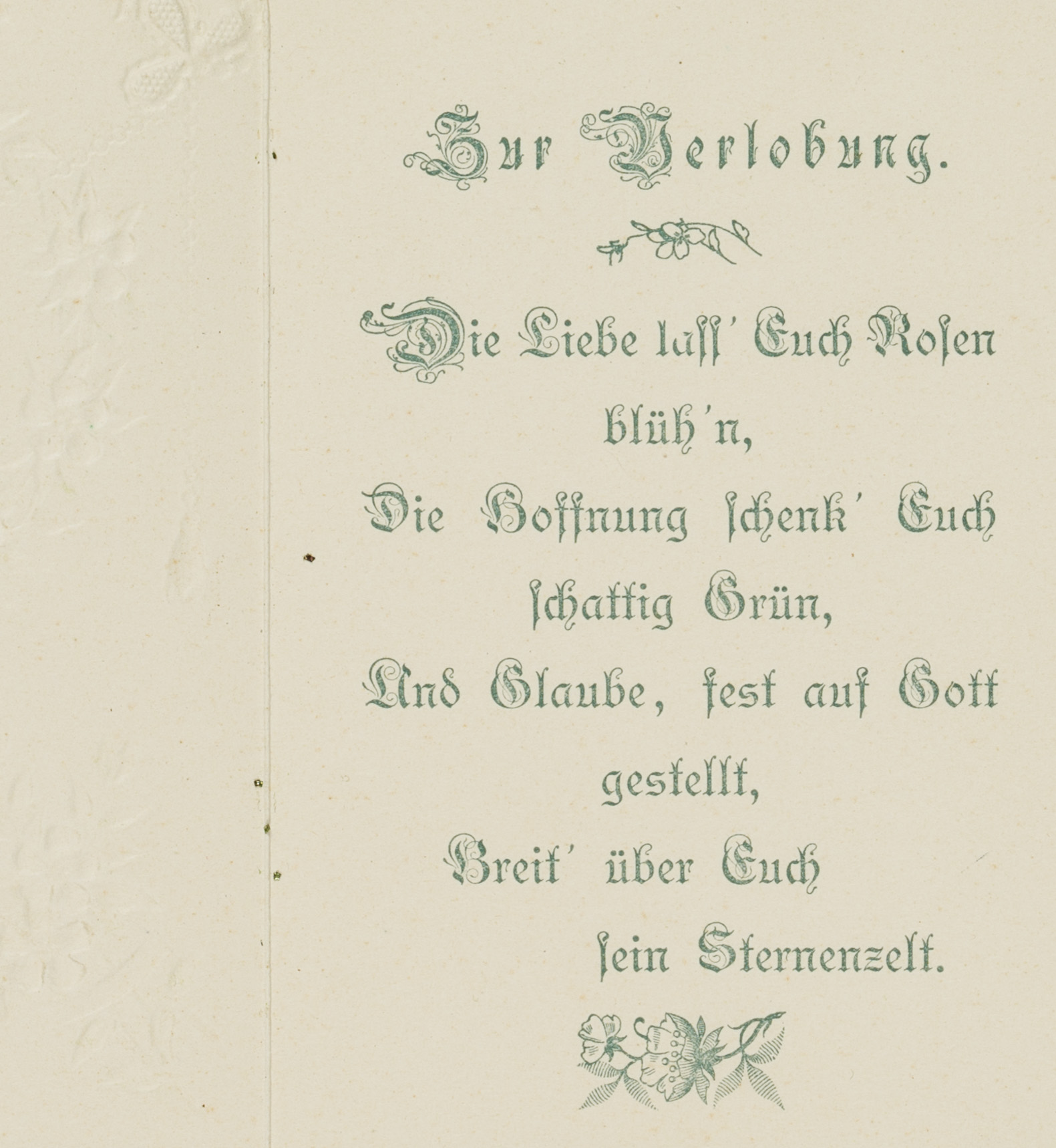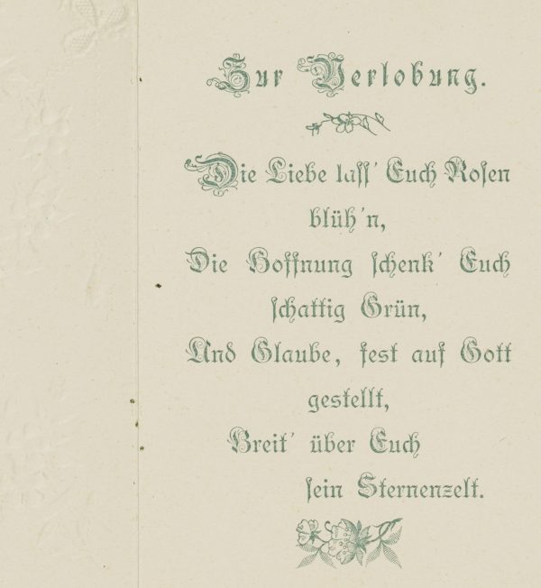 Unbekannt (20. Jahrhundert), Papierantiquität, Glückwünsche zur Verlobung. Prägedruck, um 1900, Glückwunschbillet
