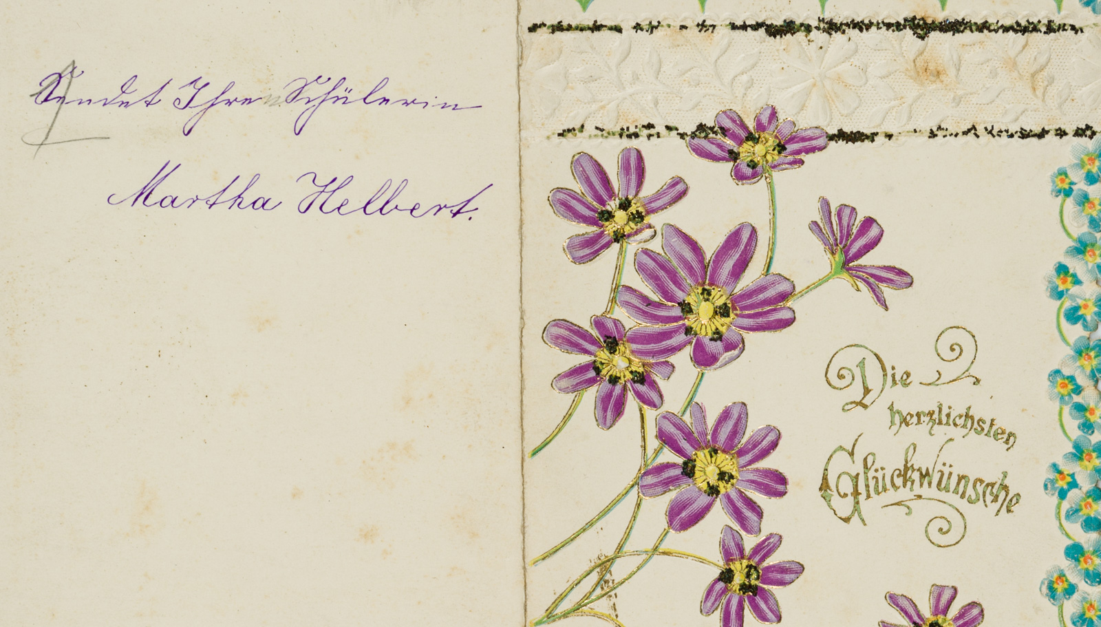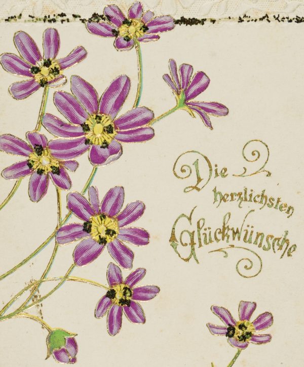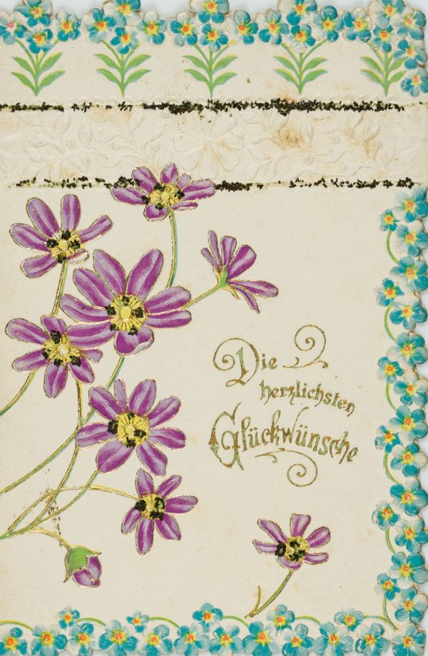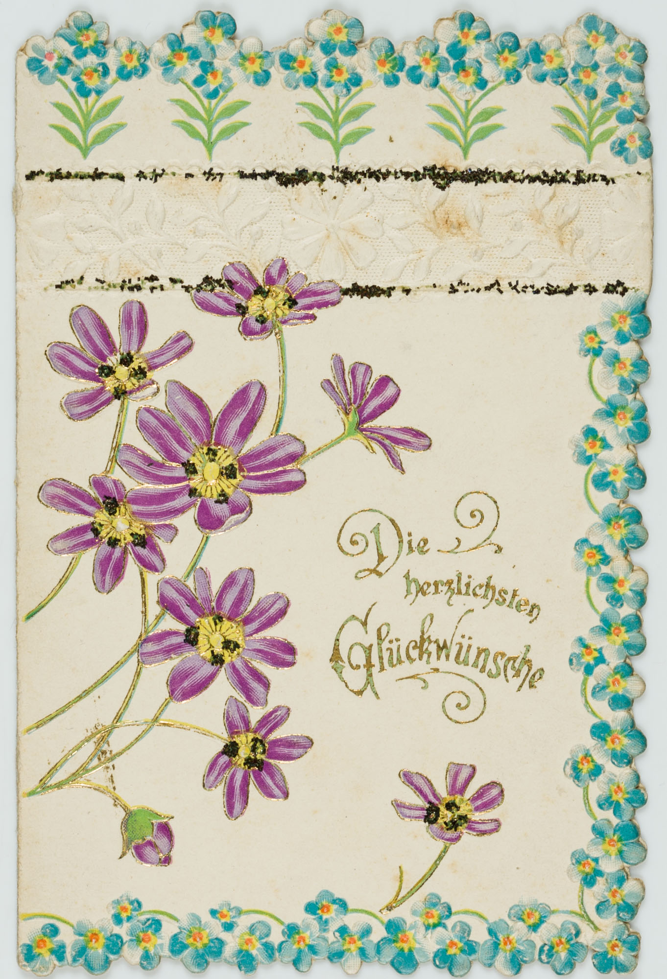 Unbekannt (20. Jahrhundert), Glückwunsch-Karte zur Verlobung mit Blumenmotiven, um 1900, Glückwunschbillet