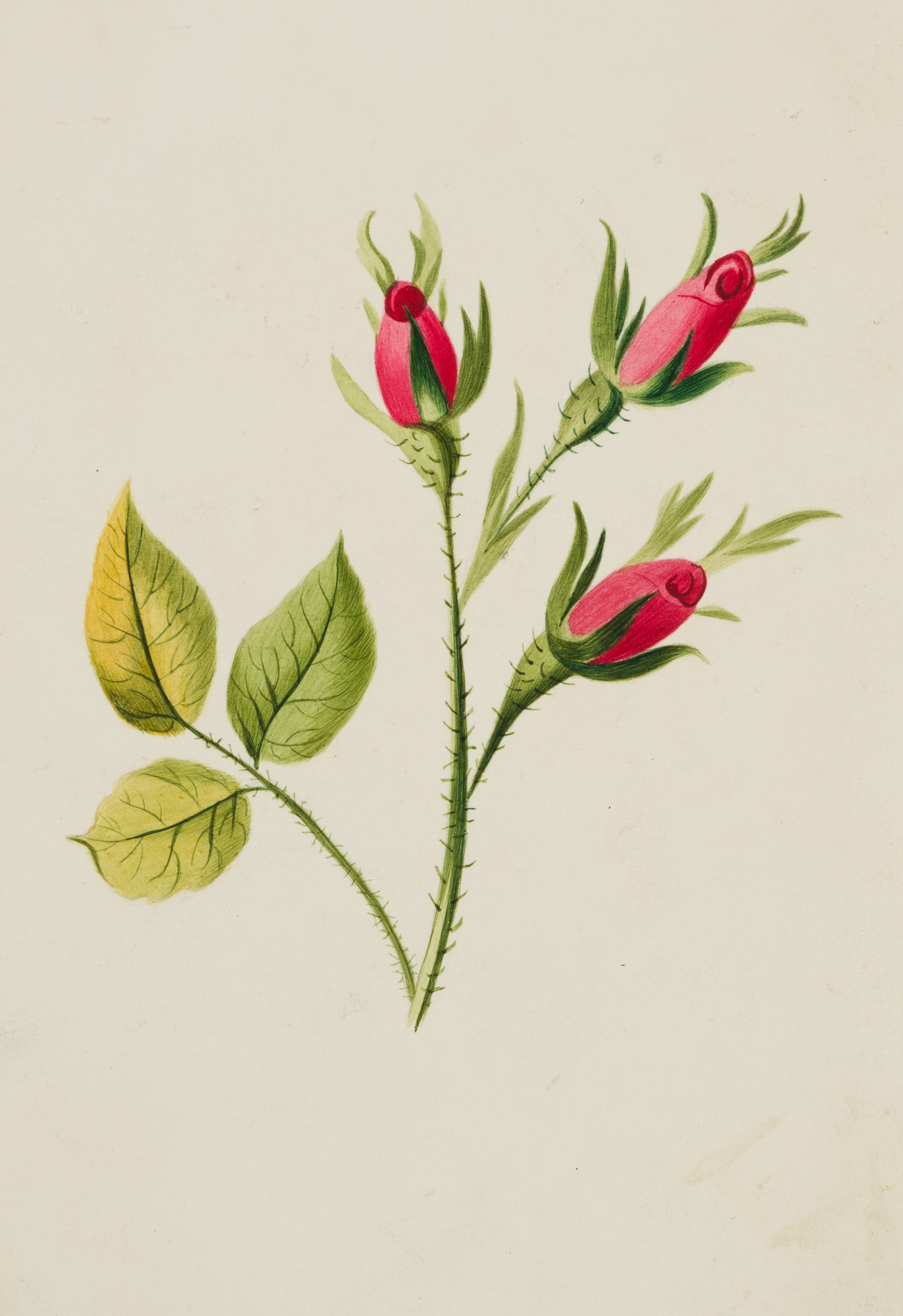 Unknown (20th century), Greetings Card with Rosy Branch, around 1900, c. 1900, Watercolor