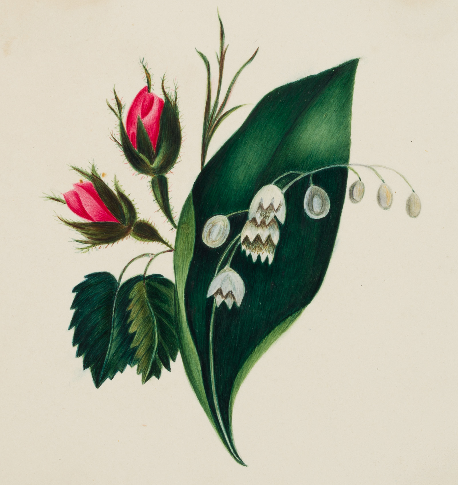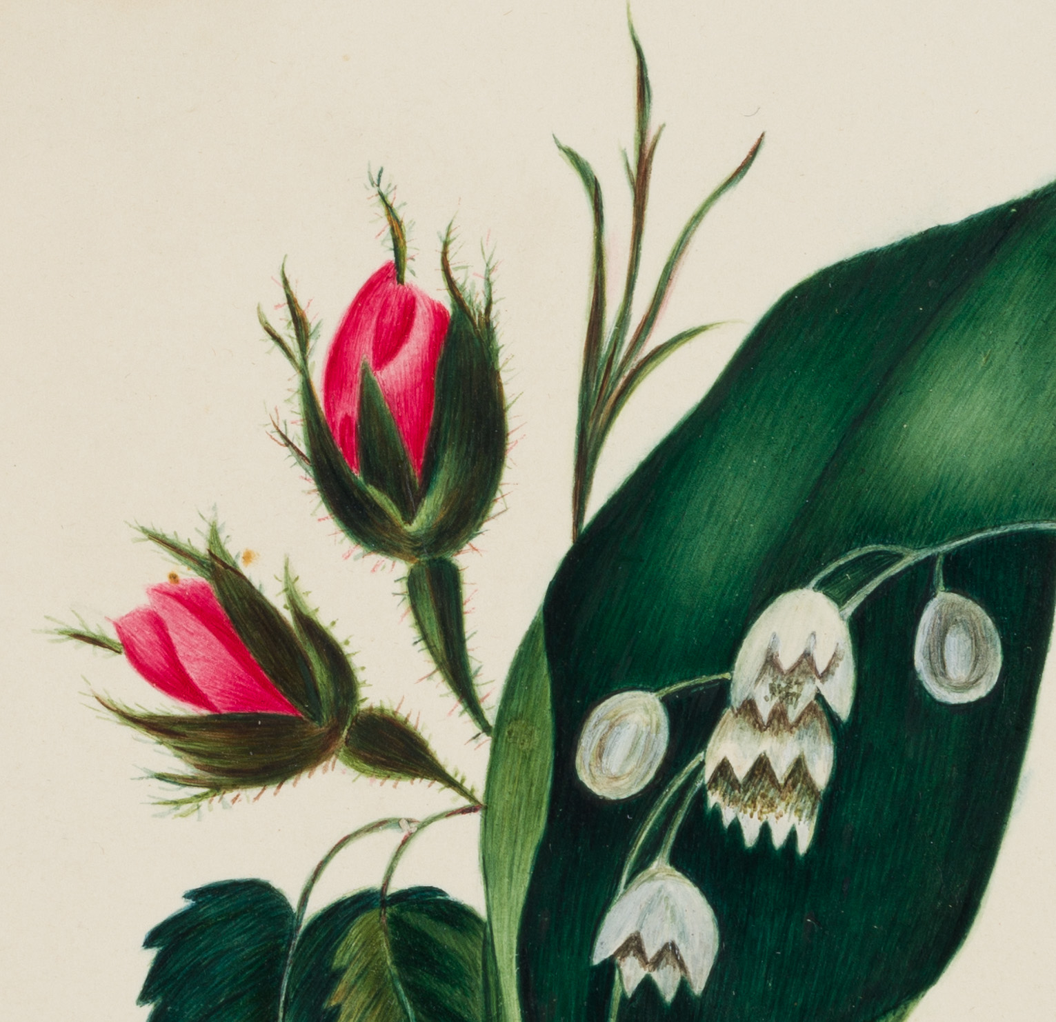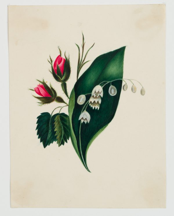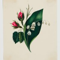 Unknown (20th century), Greetings Card with Rosy Branch and Lily of the Valley, around 1900, c. 1900, Watercolor