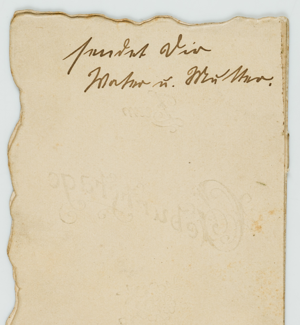 - Beschreibung: Verso mit handschriftlichem Gruß in Tinte.