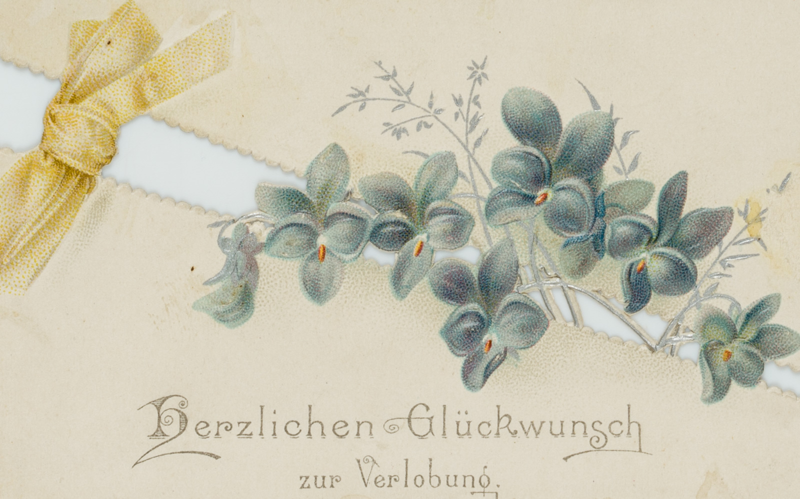 Unbekannt (20. Jahrhundert), Glückwunschkarte zur Verlobung. Schmuckkarte, um 1900, Glückwunschbillet