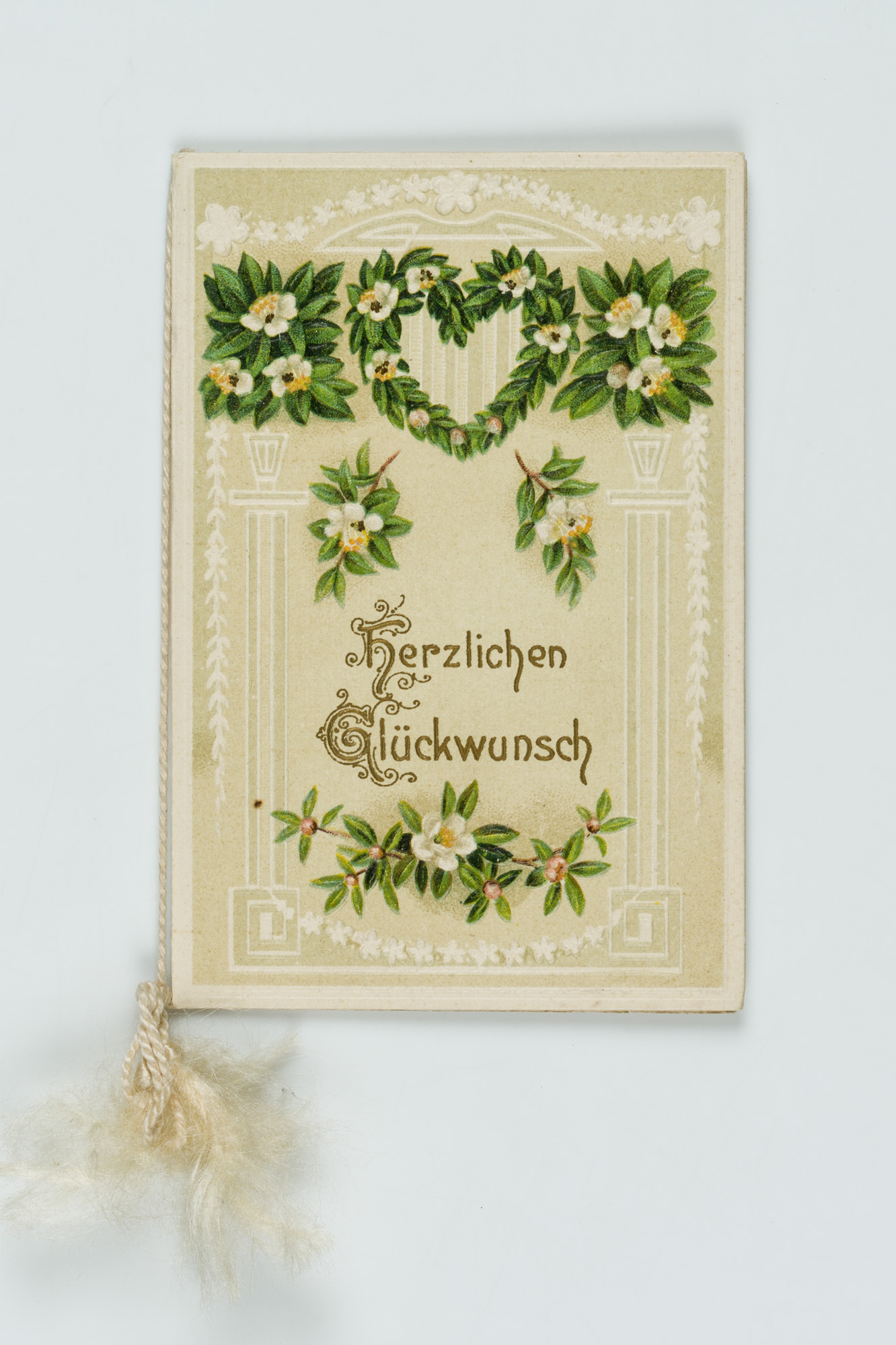 Unbekannt (20. Jahrhundert), Papierantiquität, Glückwunschkarte zur Verlobung, Prägedruck, um 1900, Glückwunschbillet