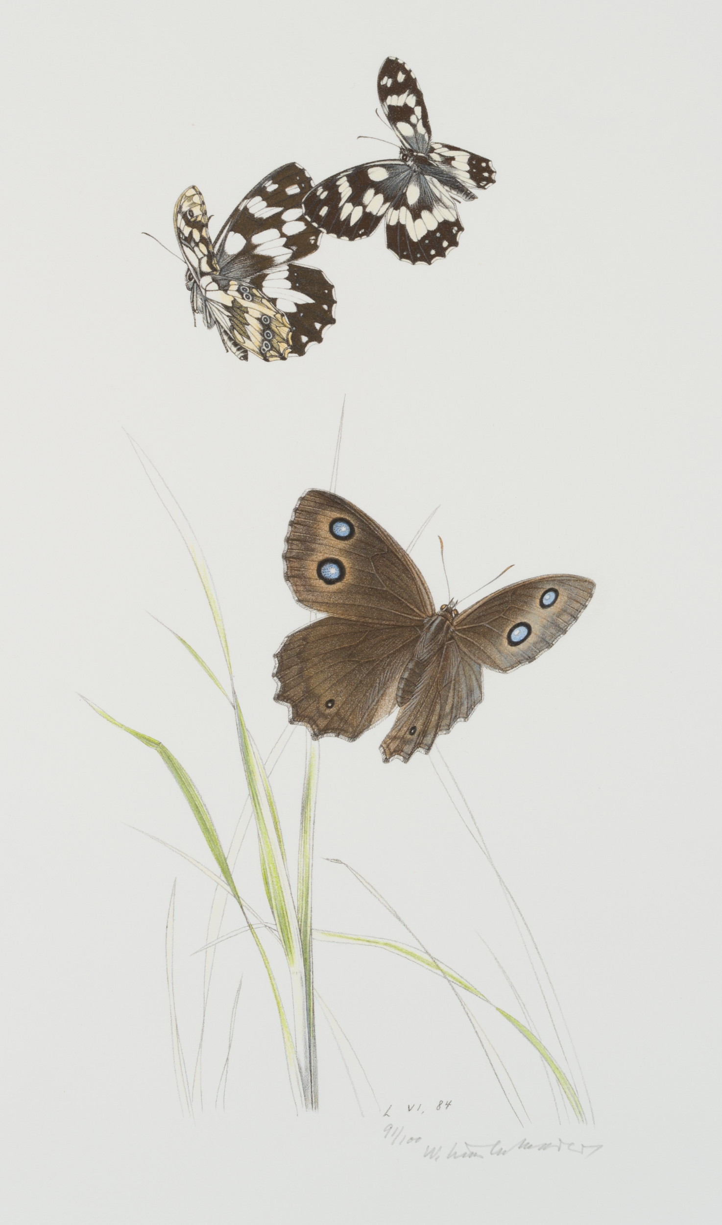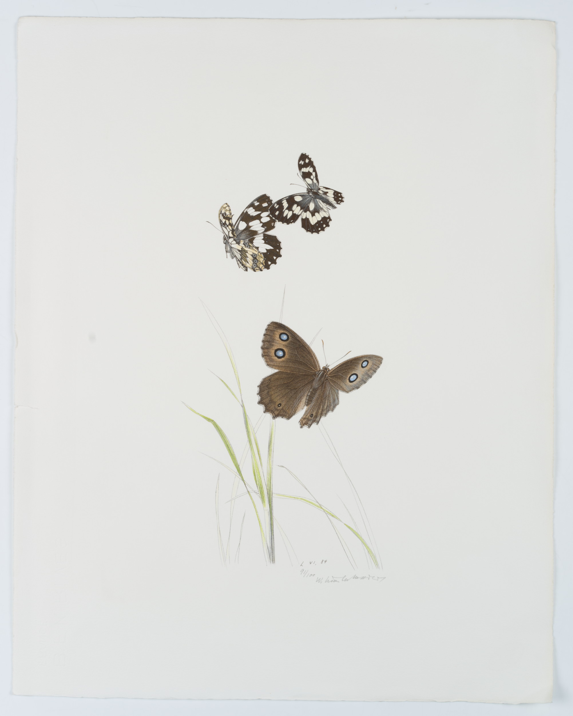 Unknown (20th century), Grasses and various butterflies flying around, 1984, Lithography