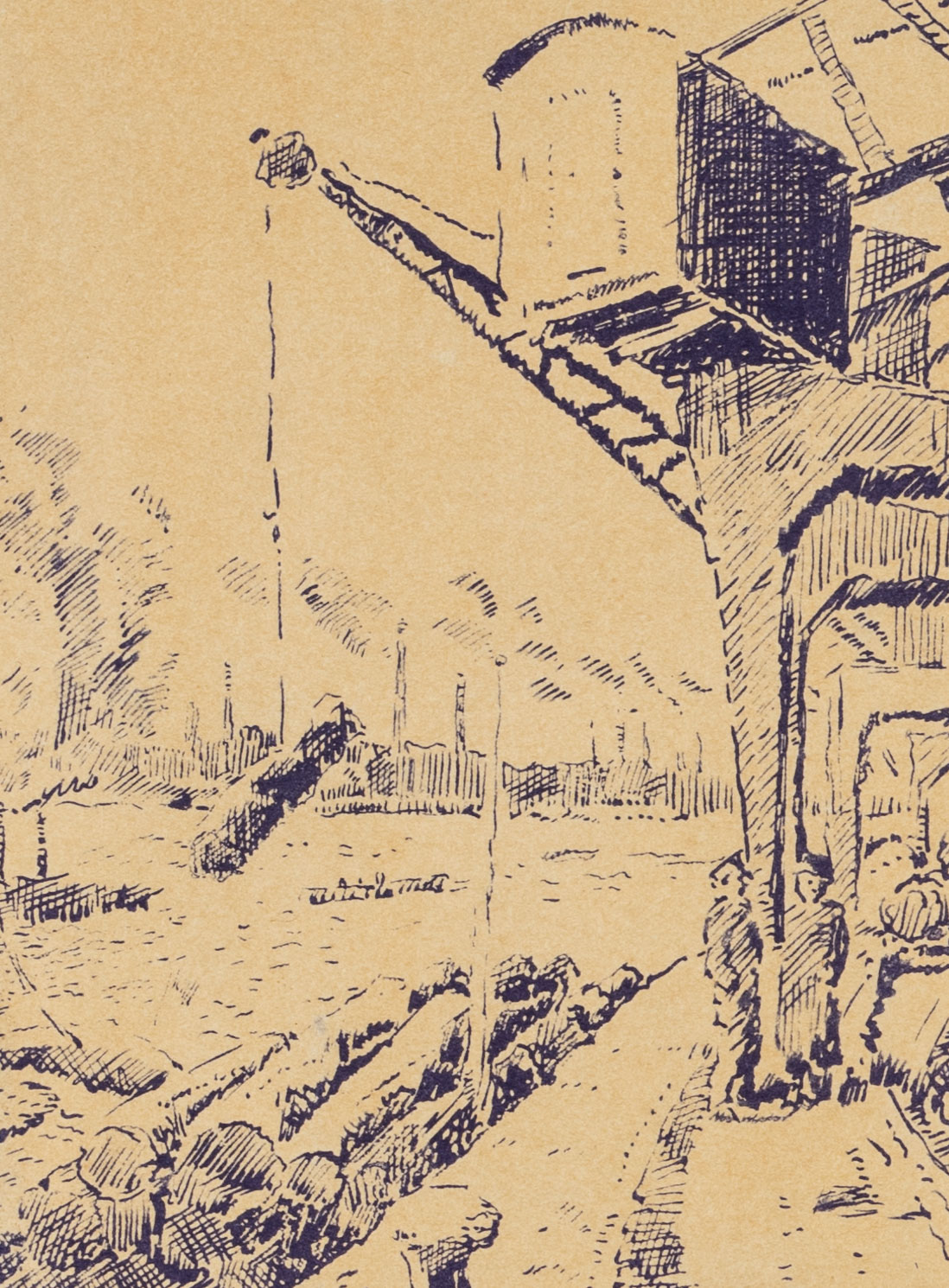 Unknown (20th century), Harbour scene with sailors, unloading a ship, , Photogravure