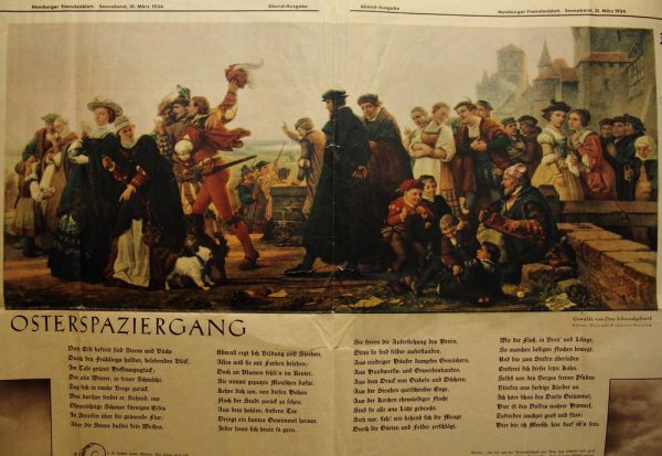 - Description: Issue of the HF of Holy Saturday, 31 March 1934, No. 89, 106th year, 1st quarter, 4th supplement with some monochrome illustrations as well as a double-page colour illustration of the painting “Faust’s Easter Walk” by Otto Schwerdgeburth from 1864.