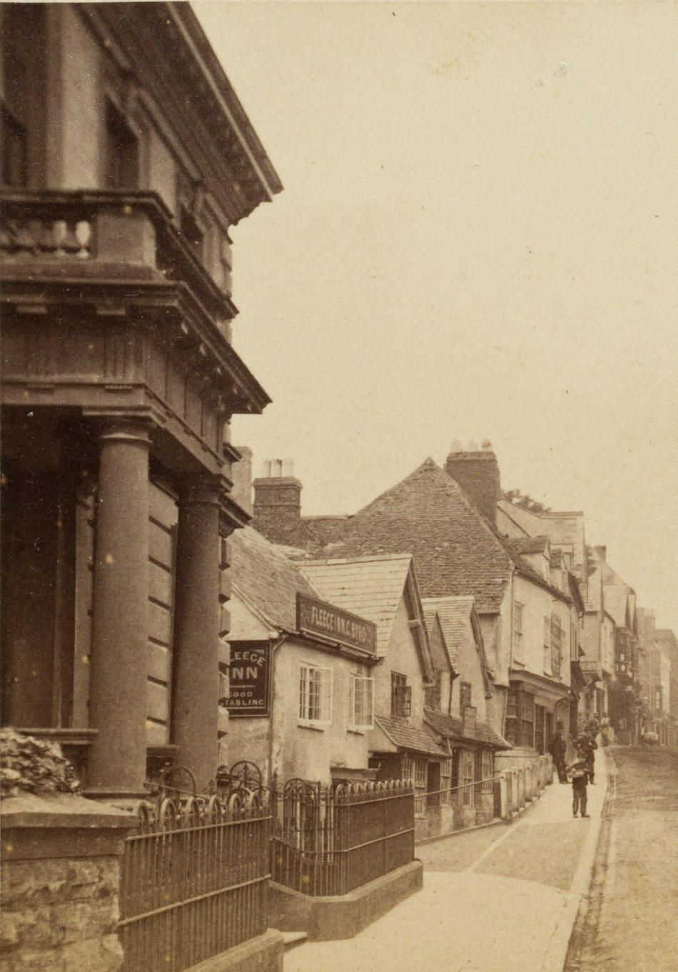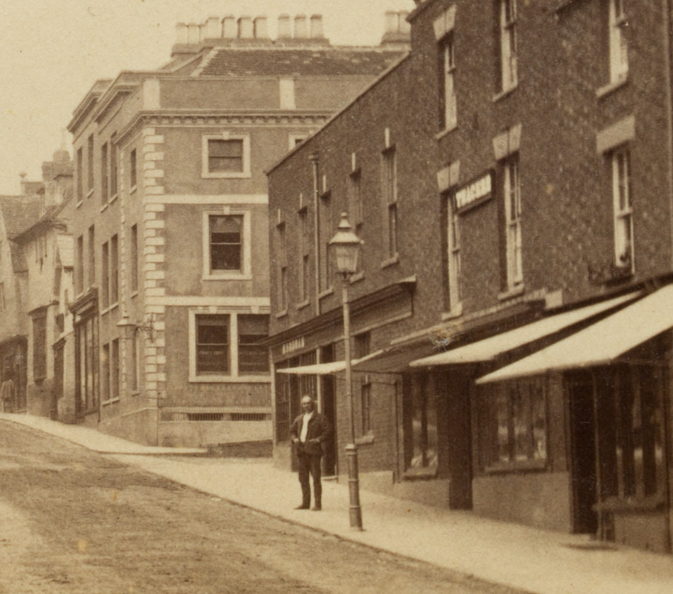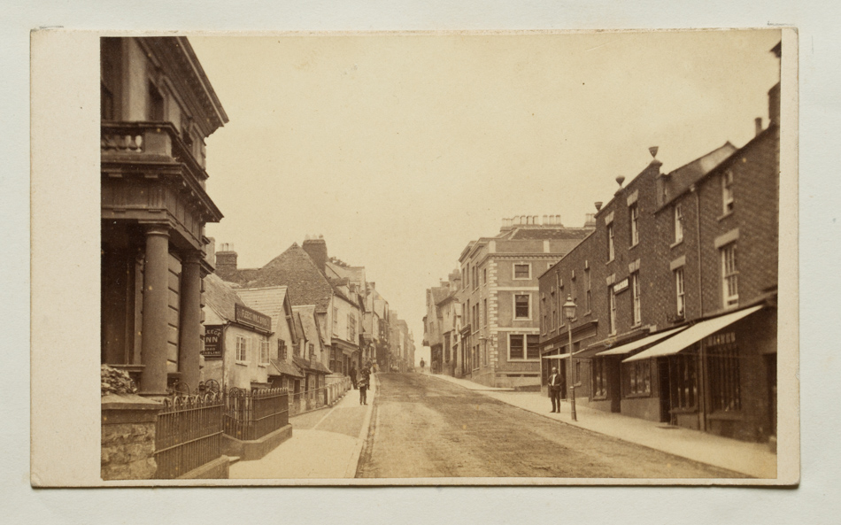 • Beschreibung: Ruhige Architekturdarstellung in kleinem Format. Am Rande einer Straße stehend blickt der Photograph entlang der Gebäude in die Ferne. Auf den Bürgersteigen sind einzelne Fußgänger zu sehen, die neugierig für die Kamera posieren. Englischsprachige Werbetafeln an den Häusern sowie die Bauweise selbiger weisen auf die amerikanische Provenienz hin. Interessant ist die Spannung zwischen der reichen klassizistischen Hausfront mit Altan im linken Vordergrund zu den ärmlichen und geduckt wirkenden Arbeiterhäusern in direkter Nachbarschaft.