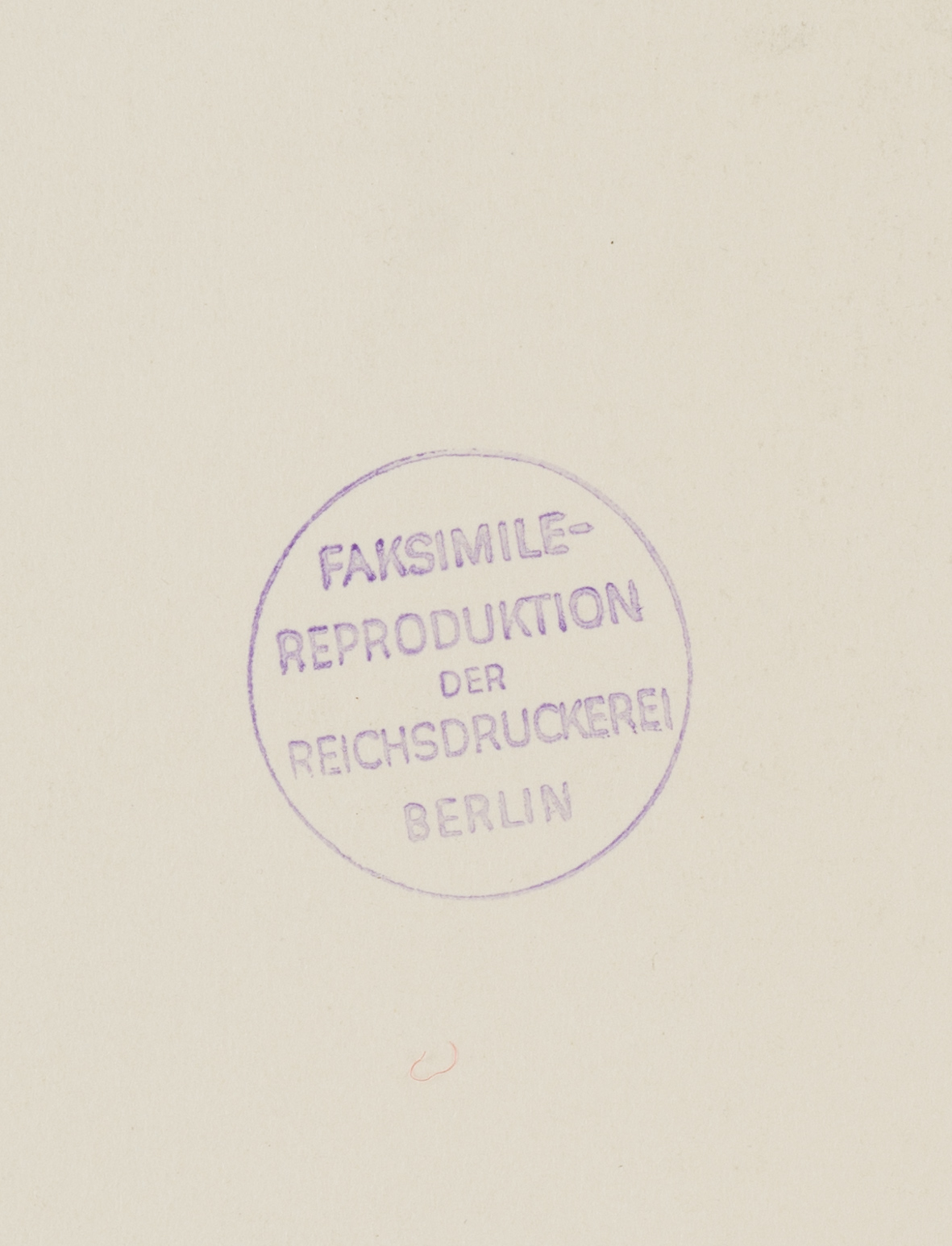 - Zustand: Guter Zustand. Die Darstellung macht einen sehr guten Eindruck. Unten rechts mit Randeinriss, verso mit Klebestreifen fixiert; rechte Blattkante mit kleinem Einriss, verso fixiert. Blattecke oben rechts geknickt.