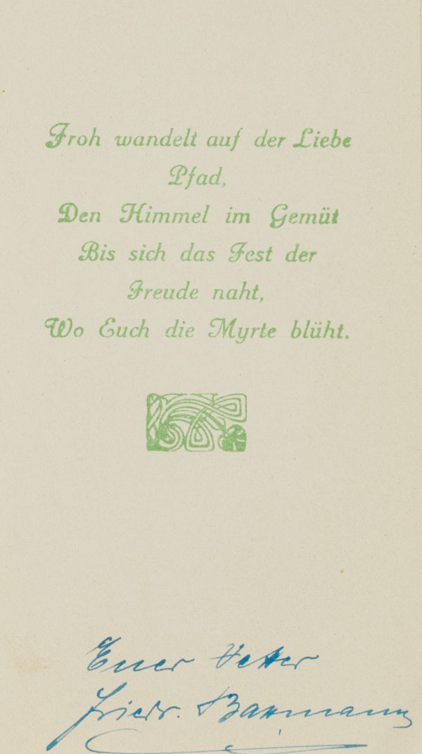 Unbekannt (20. Jahrhundert), Papierantiquität, Jugendstil Glückwunschkarte zur Verlobung, um 1900, Glückwunschbillet