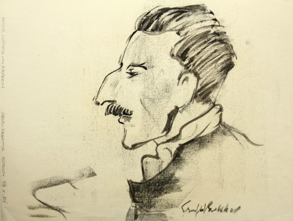 Unbekannt (20. Jahrhundert), Karikatur Prinz Ludwig von Bayern, 1951, Kohle