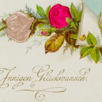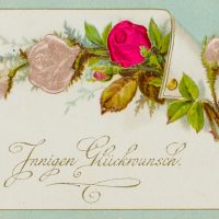 - Beschreibung: Besondere Glückwunsch-Karte zum Geburtstag mit Rosendarstellungen und Seidenapplikationen.