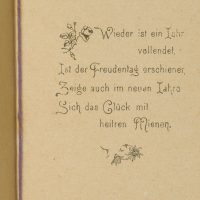 - Beschreibung: Kolorierter Prägedruck. Sehr schöne Glückwunschkarte zum Geburtstag mit gestanzter Taube und Blüten; es wurde mit sehr filigranen Durchbrechungen gearbeitet; Eingehängtes Doppelblatt mit gedruckten Glückwünschen; handschriftliche Grüße mit Tinte.